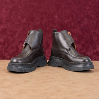 Ganni Creeper Monk Strap Dark Brown Leather Platform Ankle Boots 6.5US EUR37