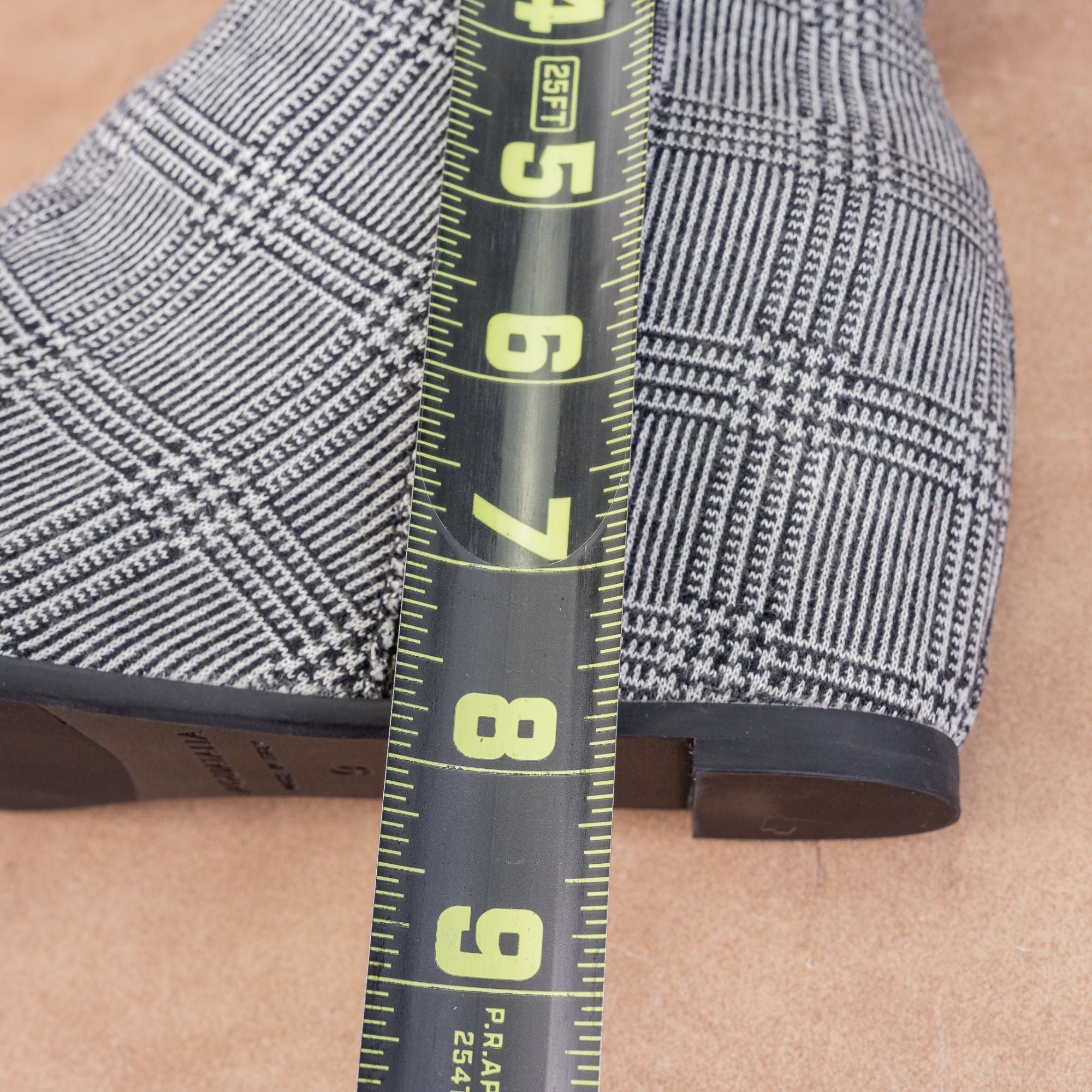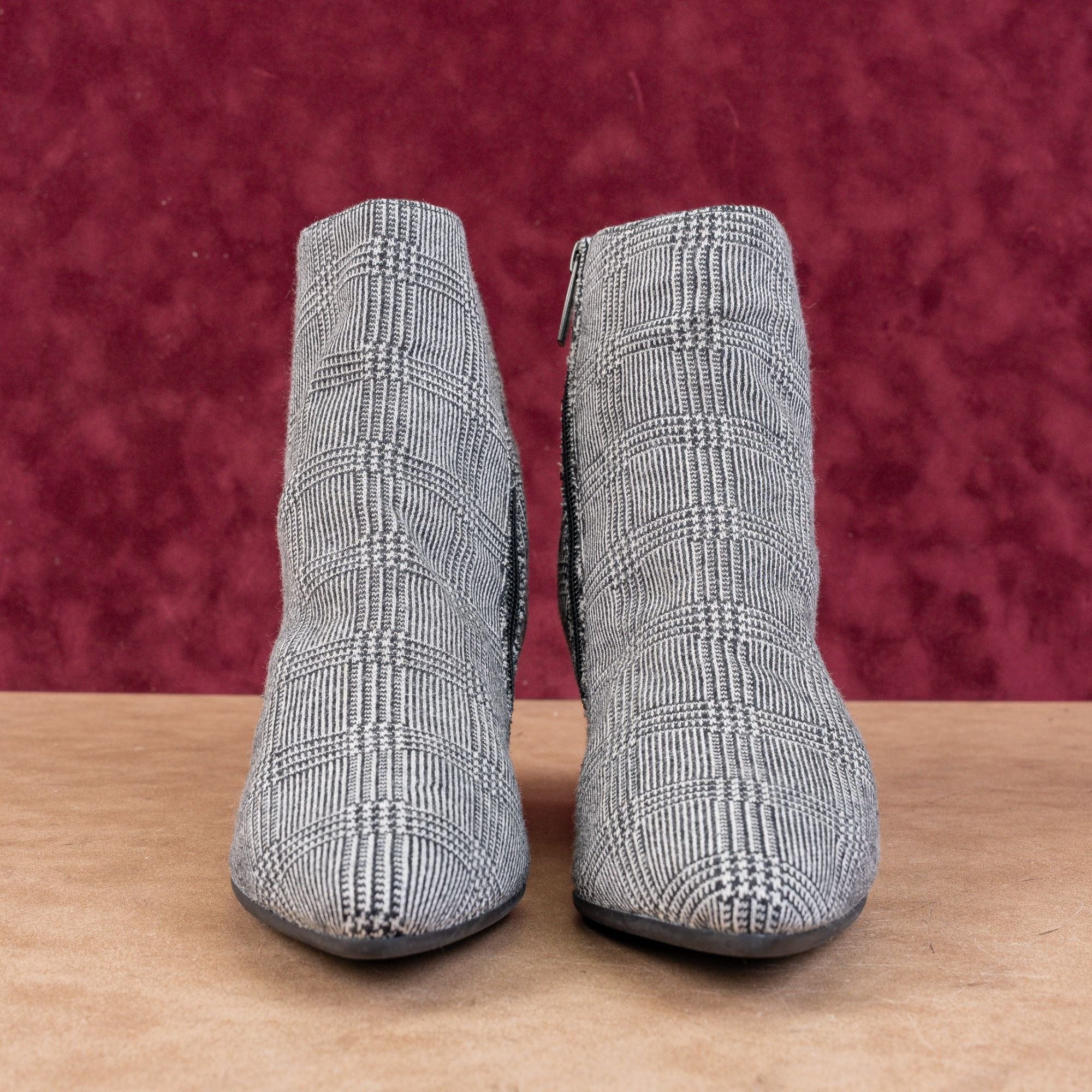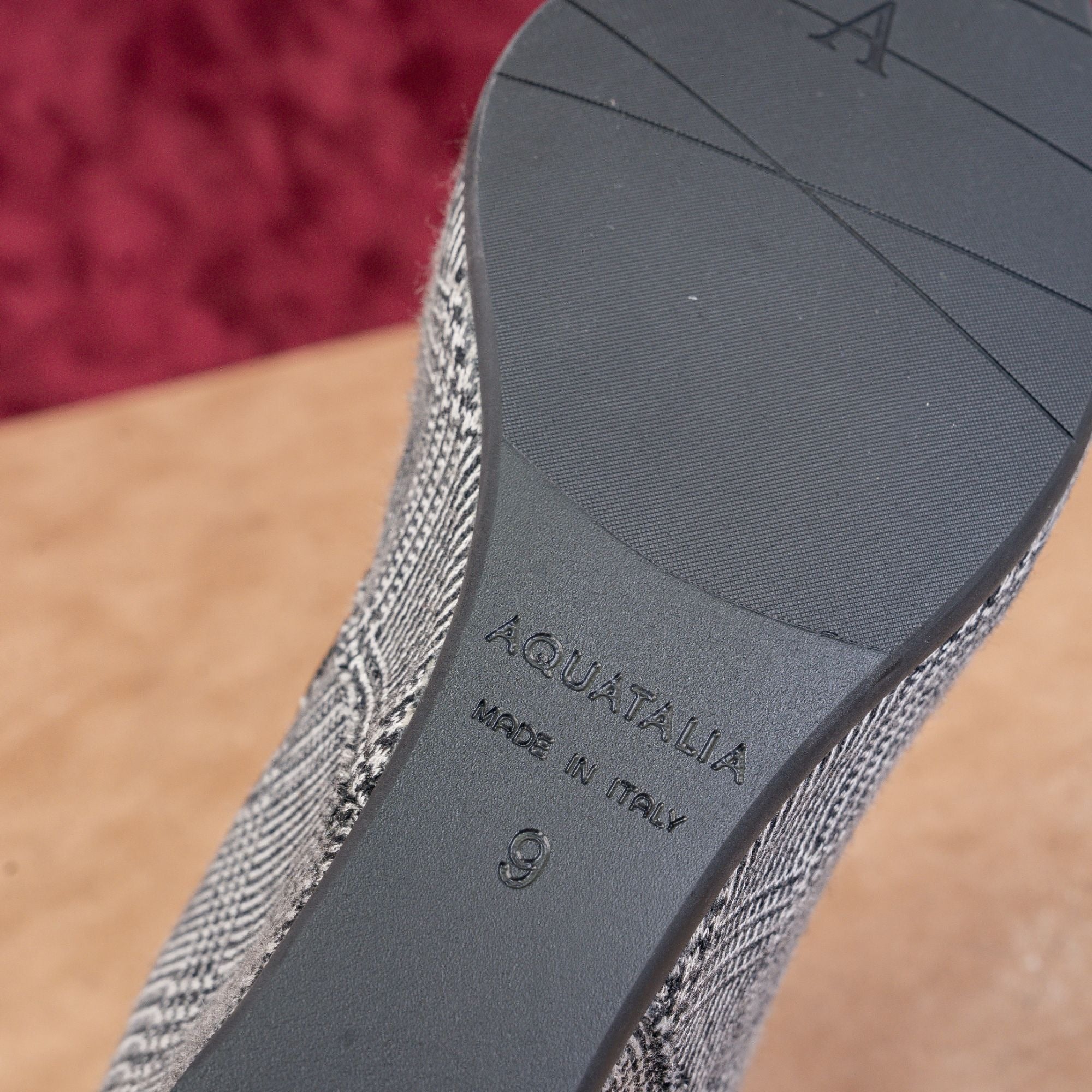New Condition. No signs of wear on the soles. Never Worn. Narrow Fit. Fits a size 8-8.5. Made in Italy. Retail $479. Fabric Upper, Leather Lining and Rubber Soles. Side zipper style for easy on and off. Pointy toe. SKU11889