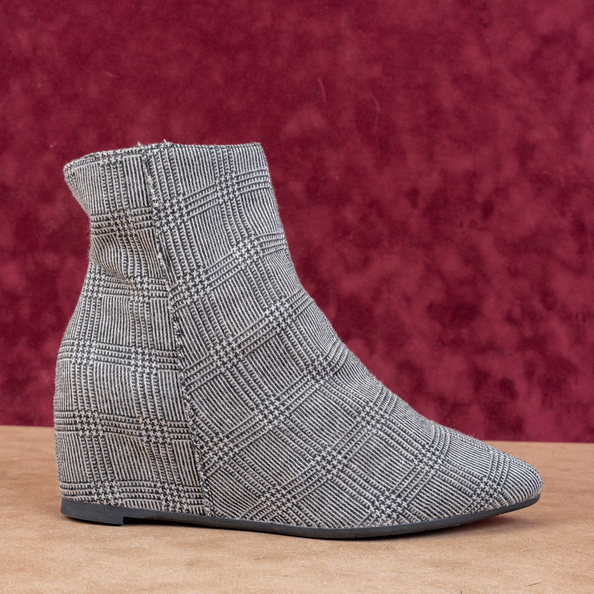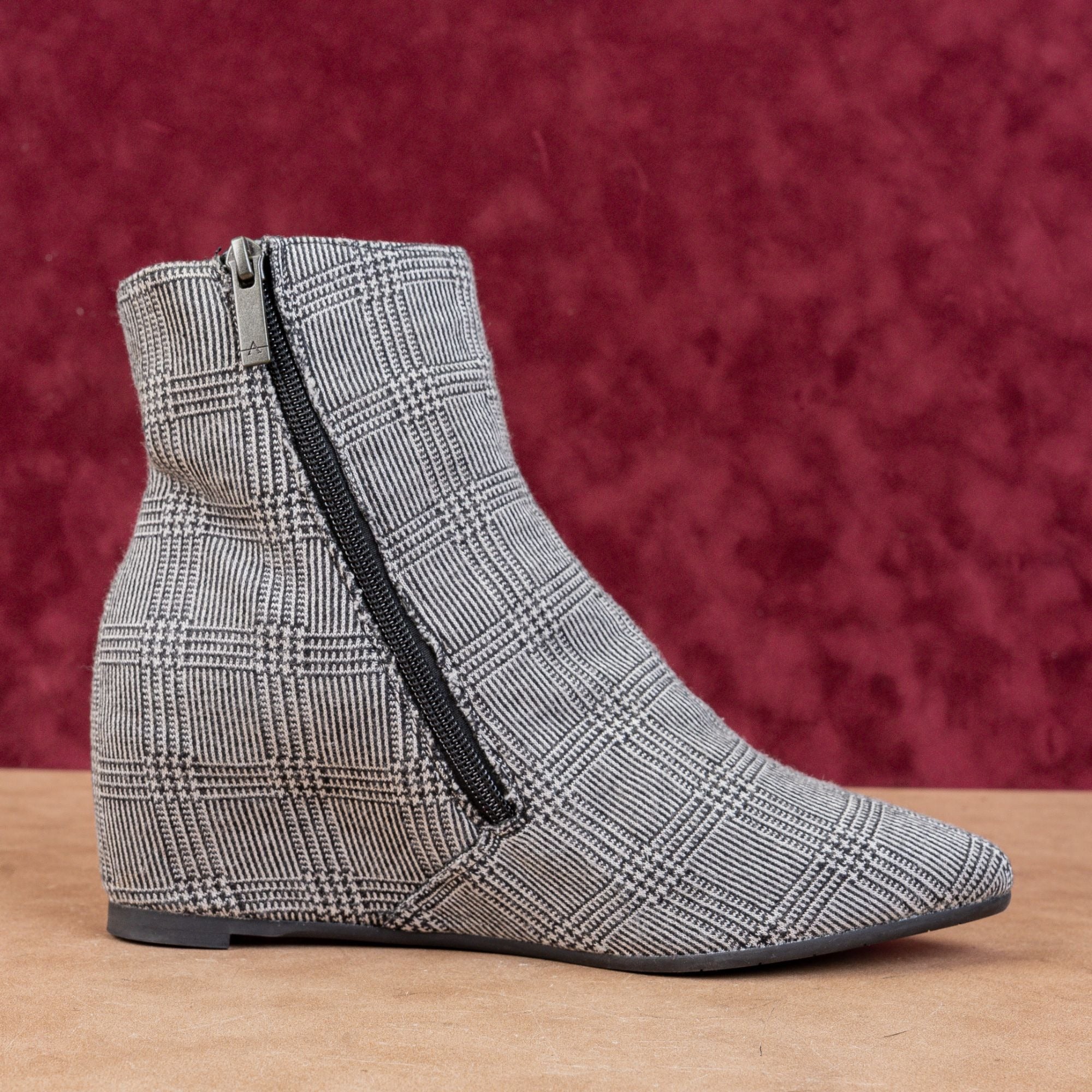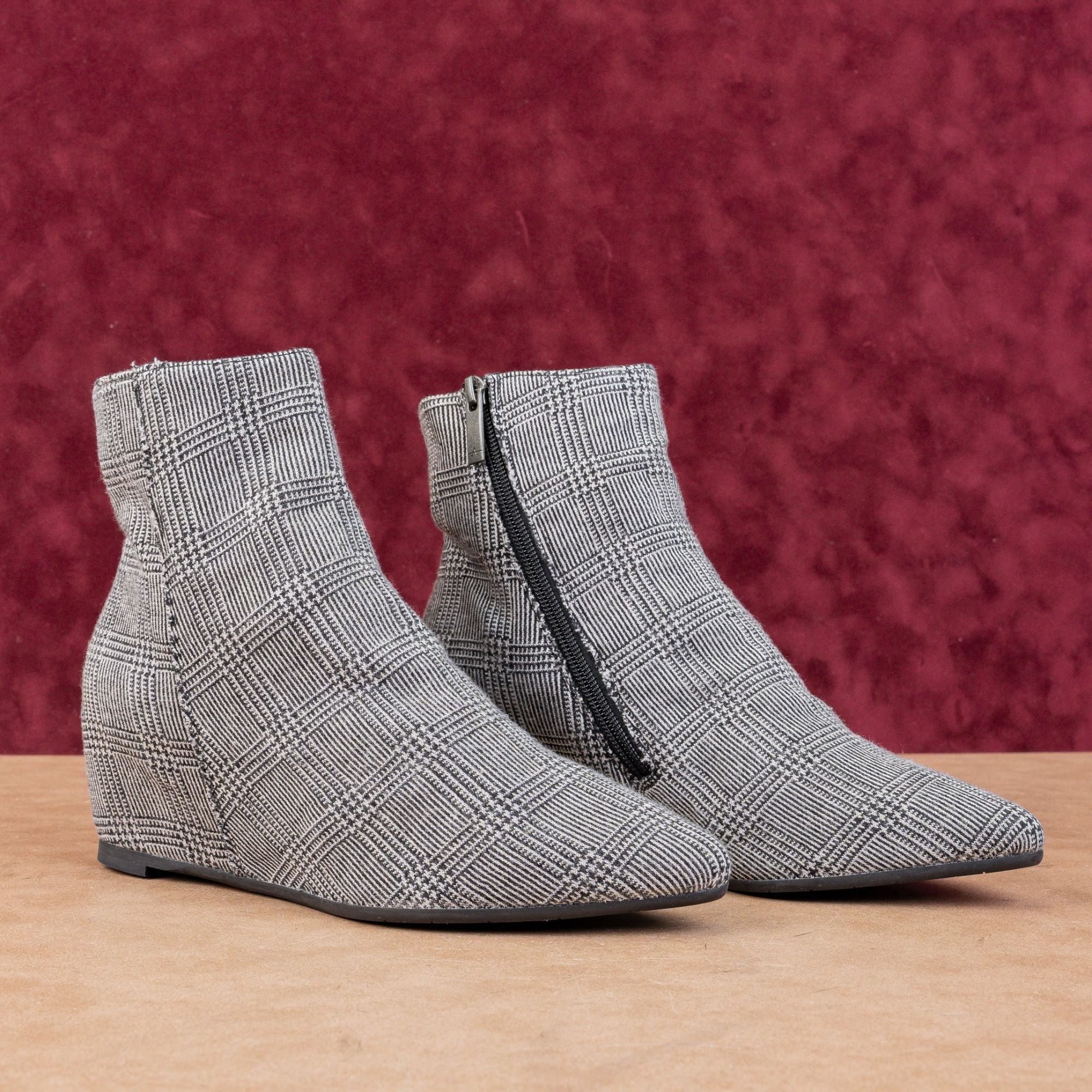 New Condition. No signs of wear on the soles. Never Worn. Narrow Fit. Fits a size 8-8.5. Made in Italy. Retail $479. Fabric Upper, Leather Lining and Rubber Soles. Side zipper style for easy on and off. Pointy toe. SKU11889