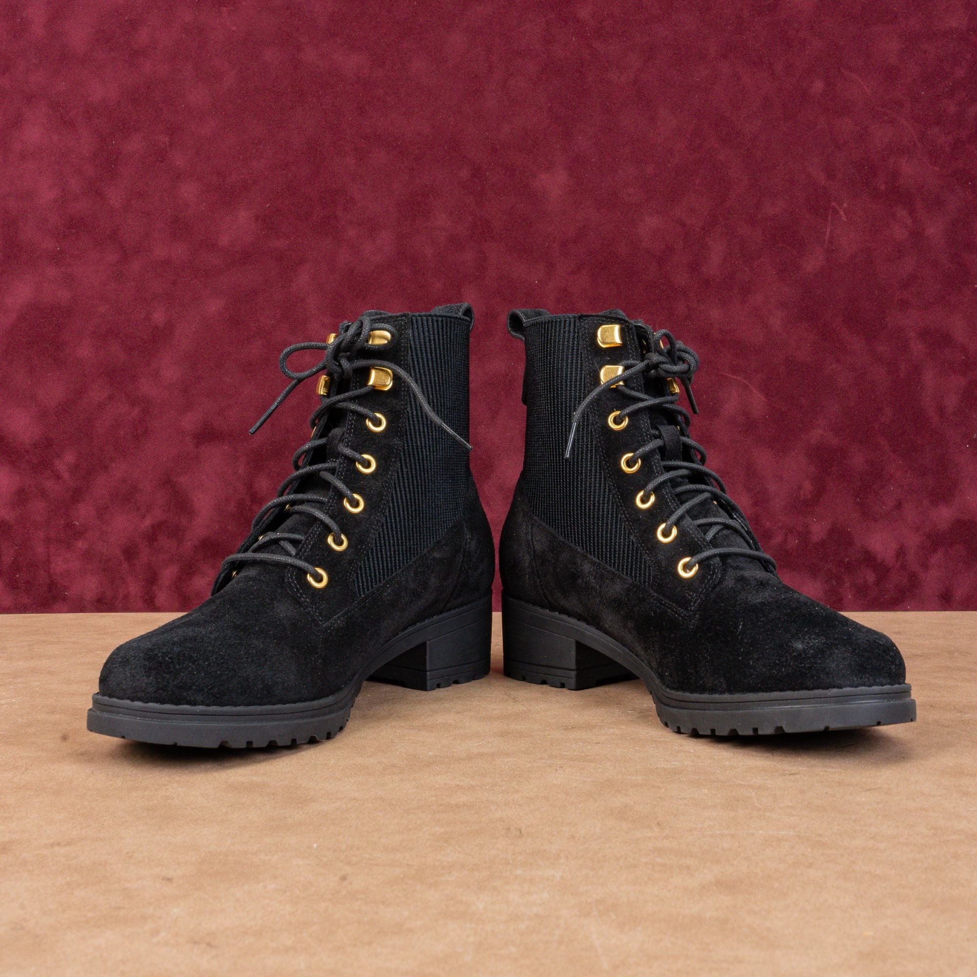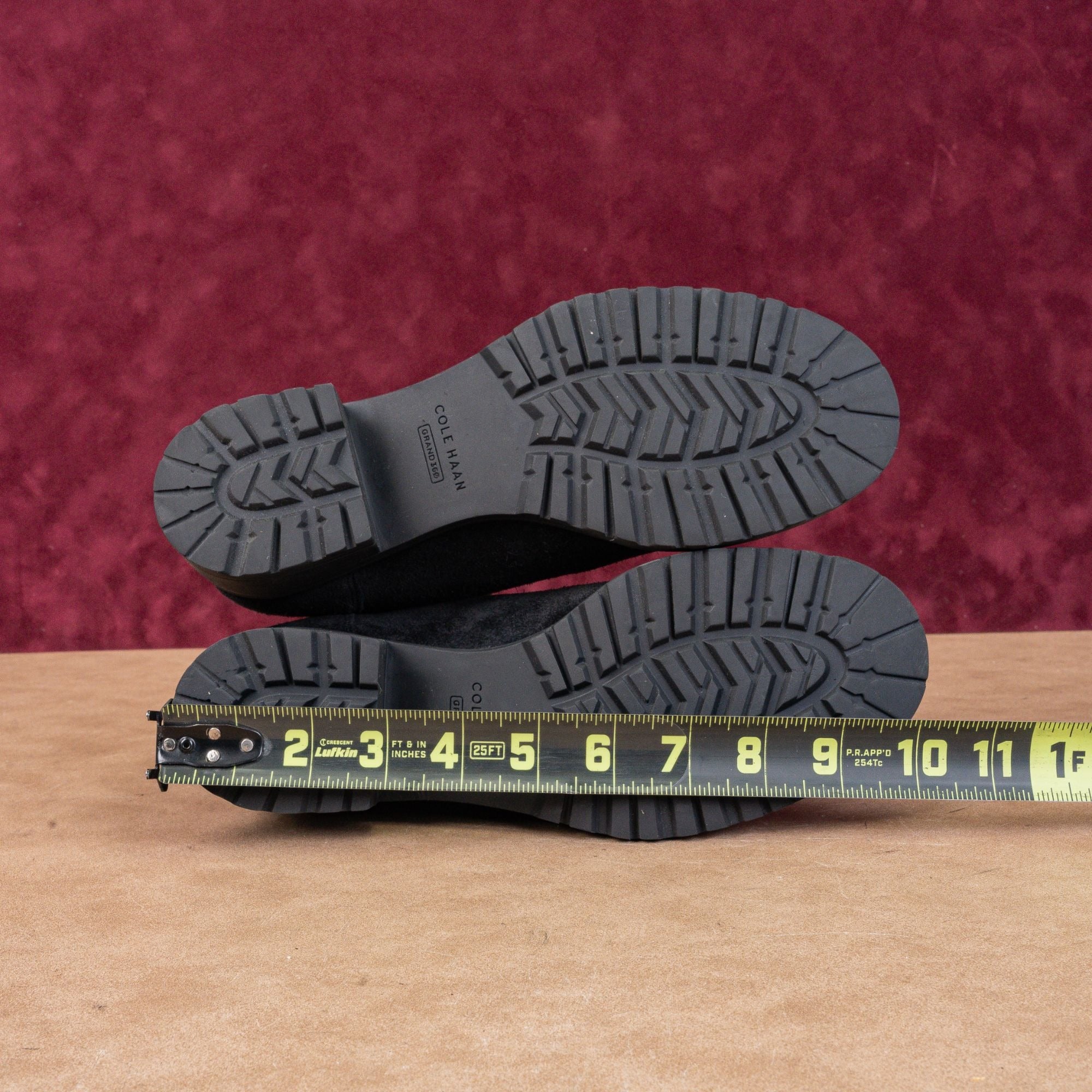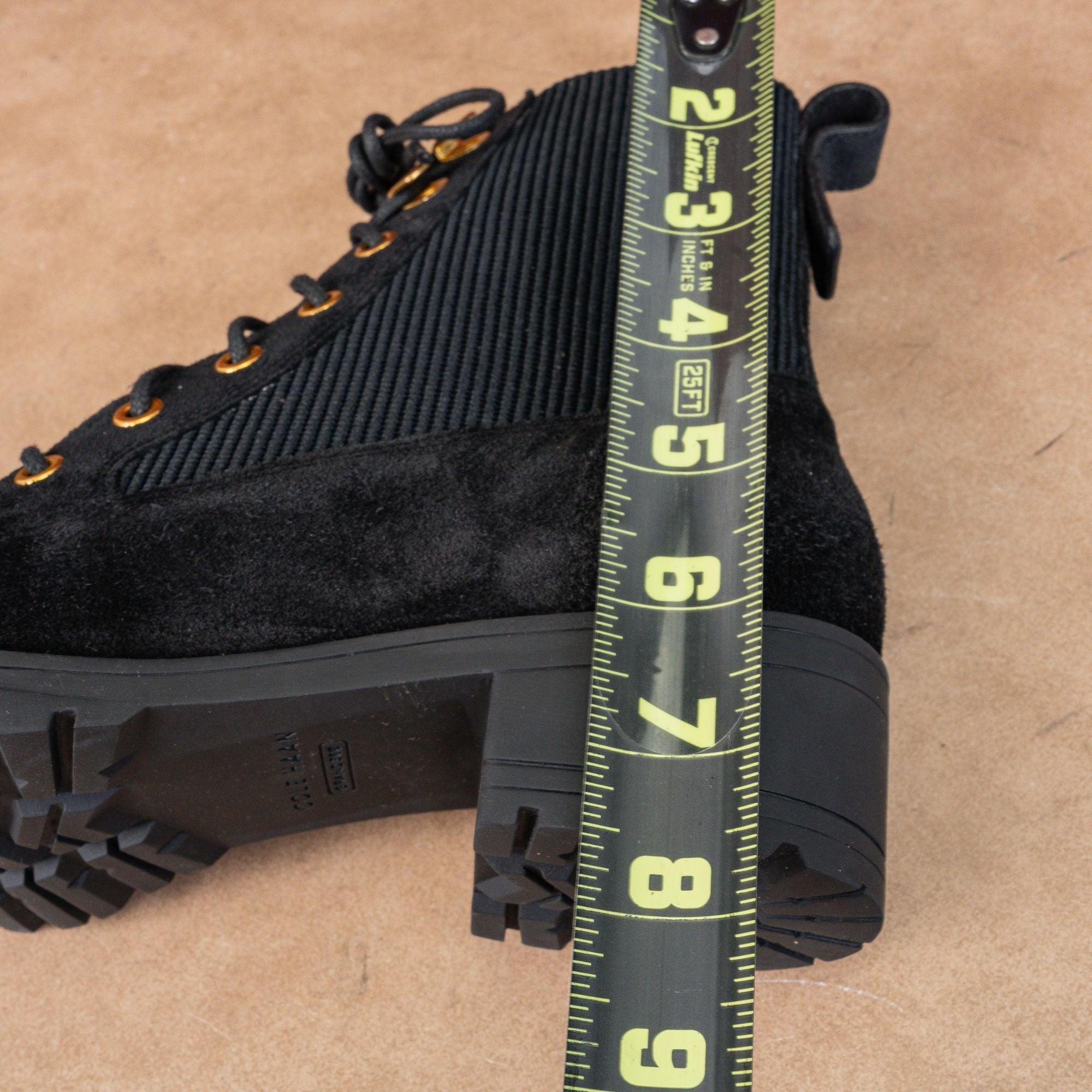 Crafted from waterproof black suede, this trendy combat boot features a durable lug sole and Cole Haan's signature Grand.OS comfort technology for lightweight, all-day wear.
