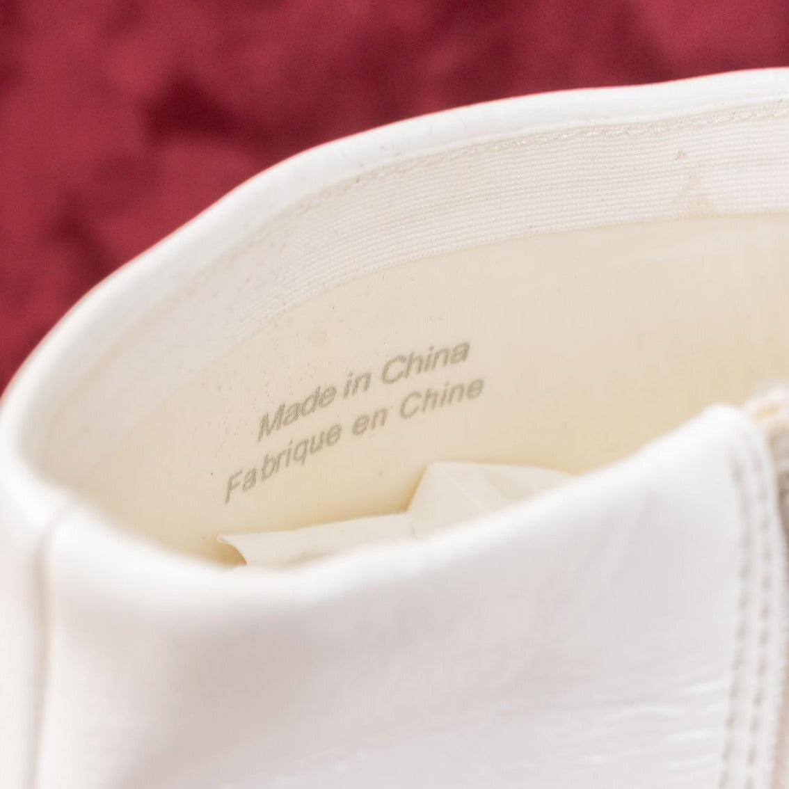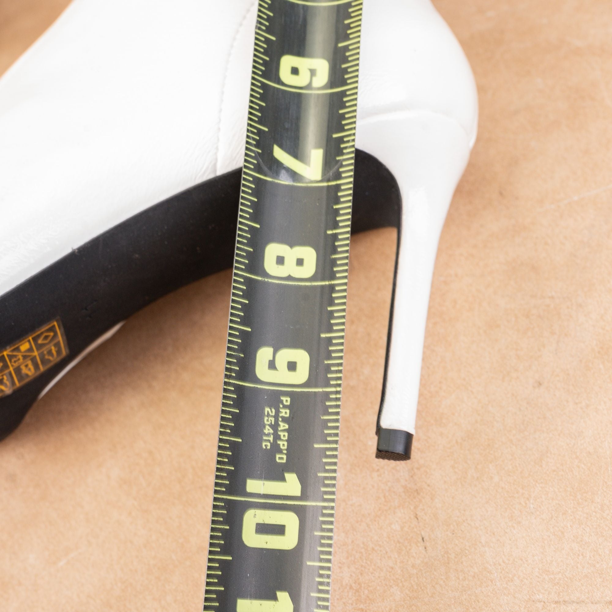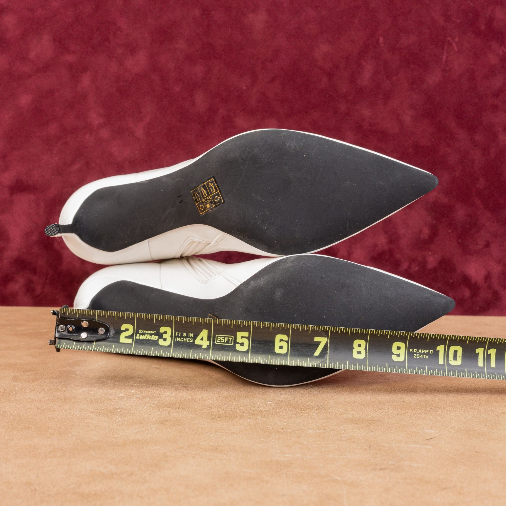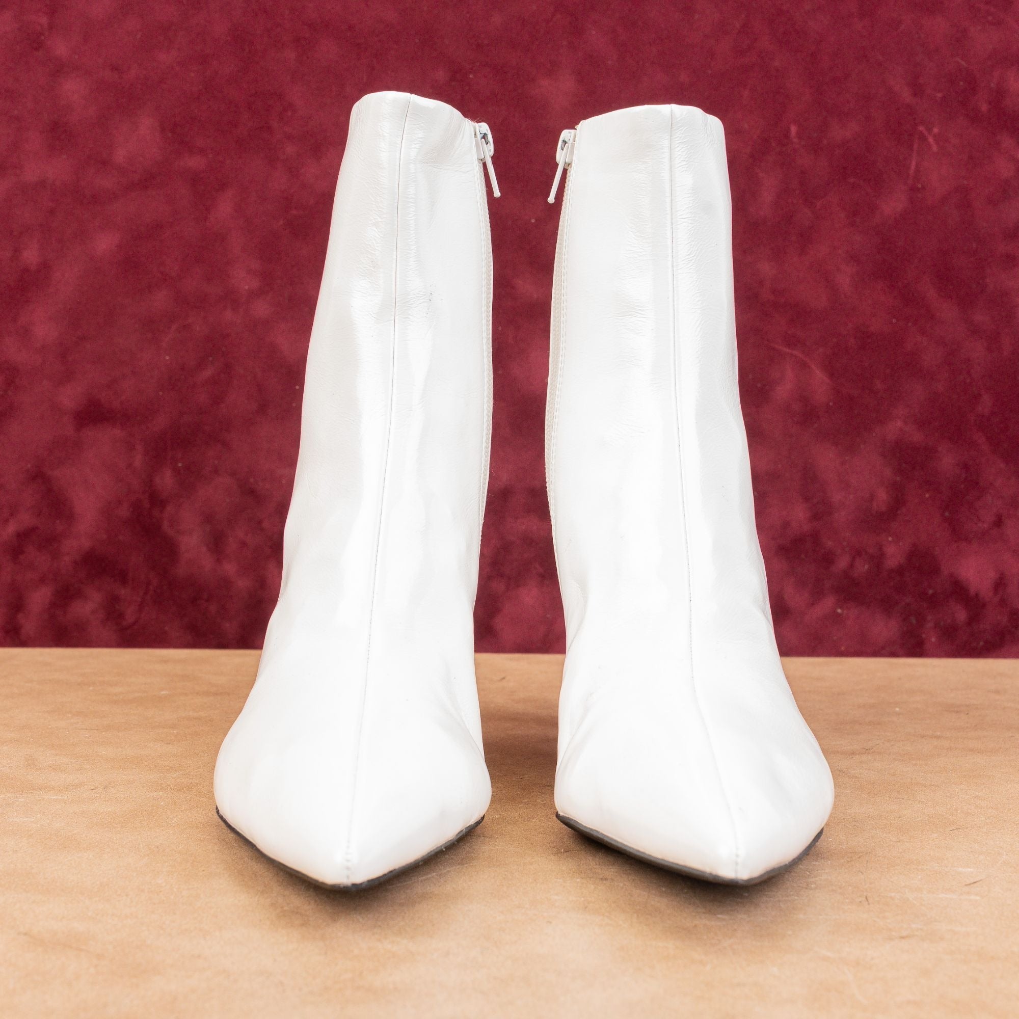 New Condition. No signs of wear on the soles. Never Worn. Retails for $220. Pointy toe. Inset side zipper for easy on and off. Faux Patent Leather Upper, Fabric Lining and Synthetic Soles. Made in China. Please check photos carefully for more information and details. SKU12239