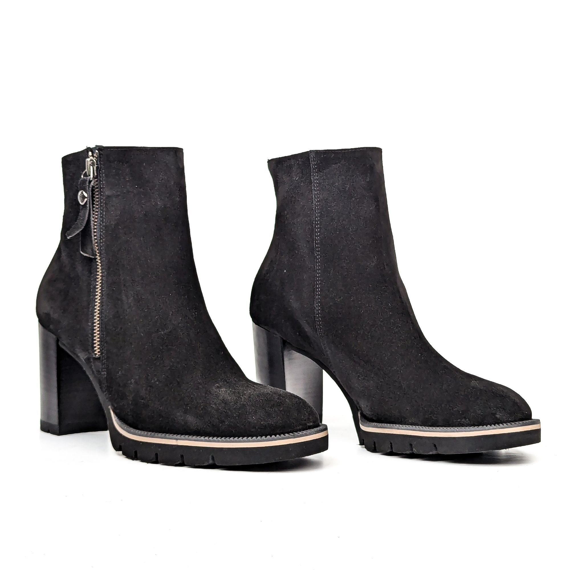 Featuring a convenient side zipper for easy wear, they showcase a classic round toe and a sleek heeled silhouette.