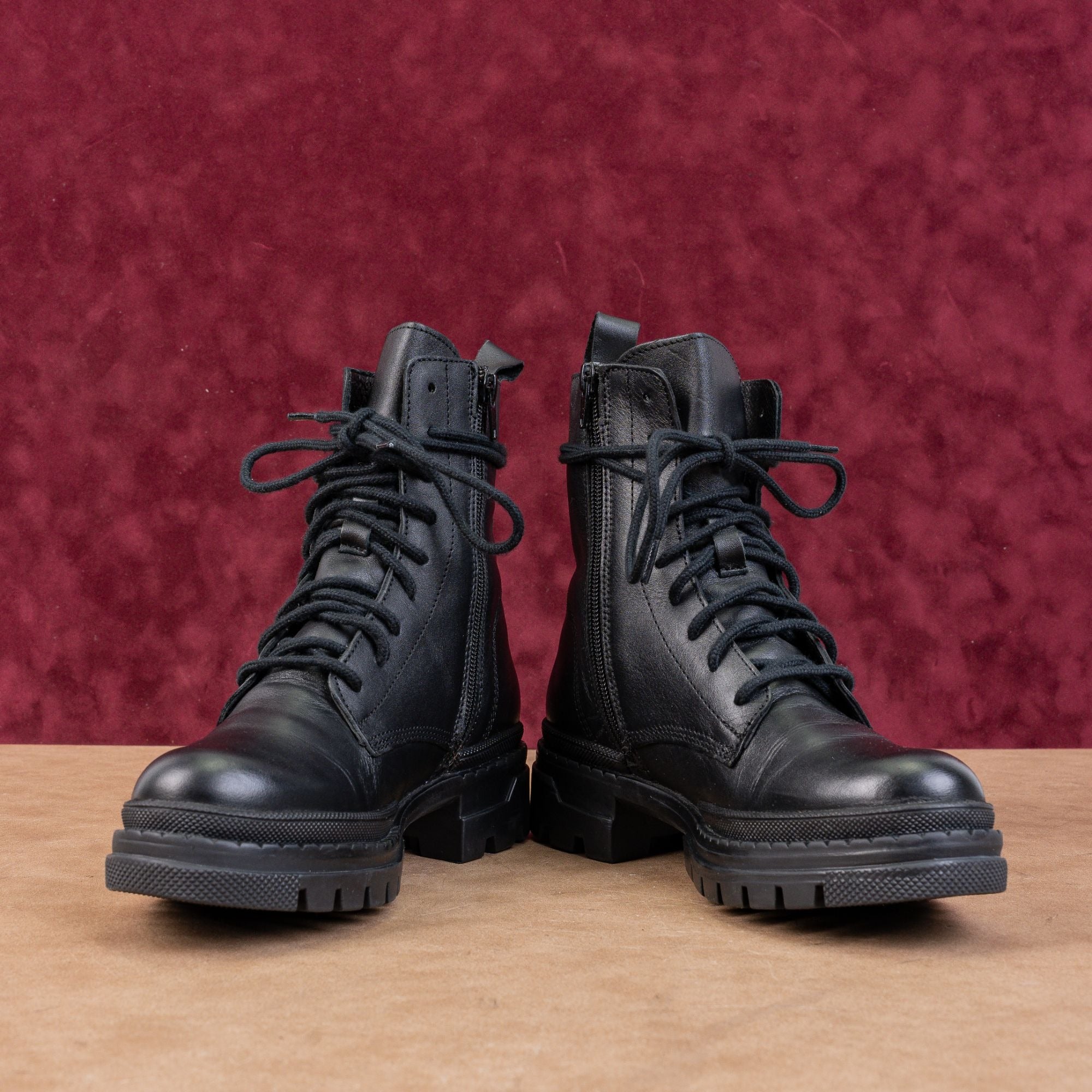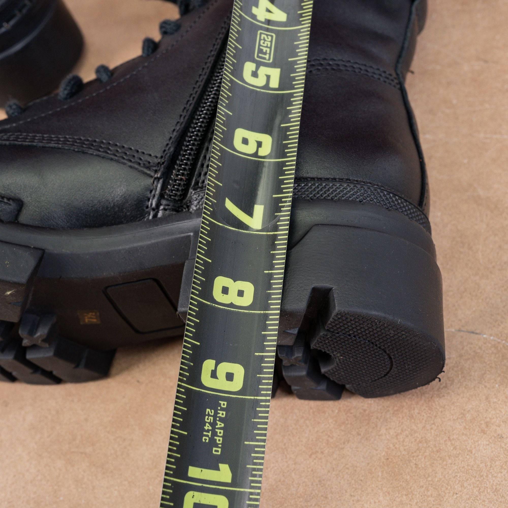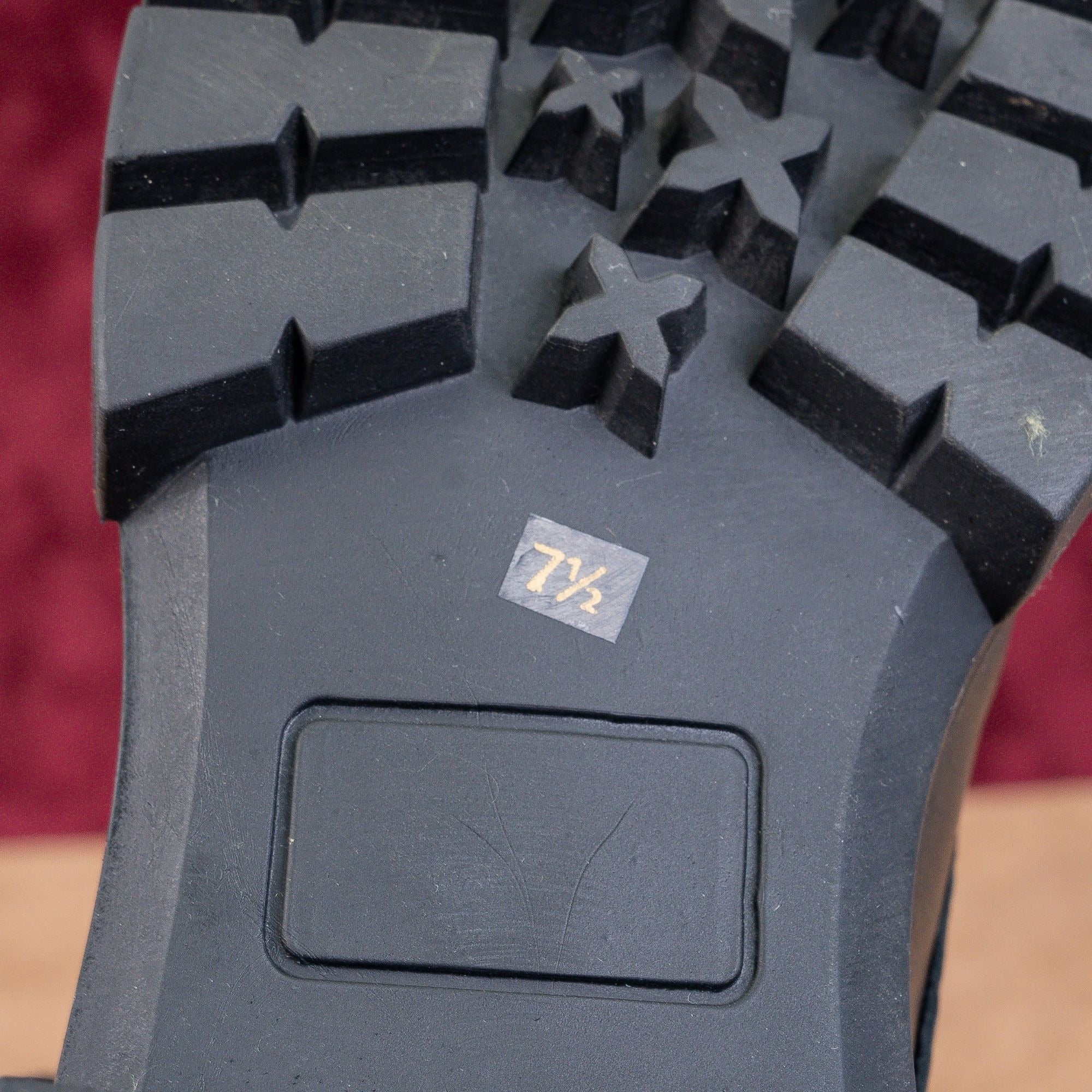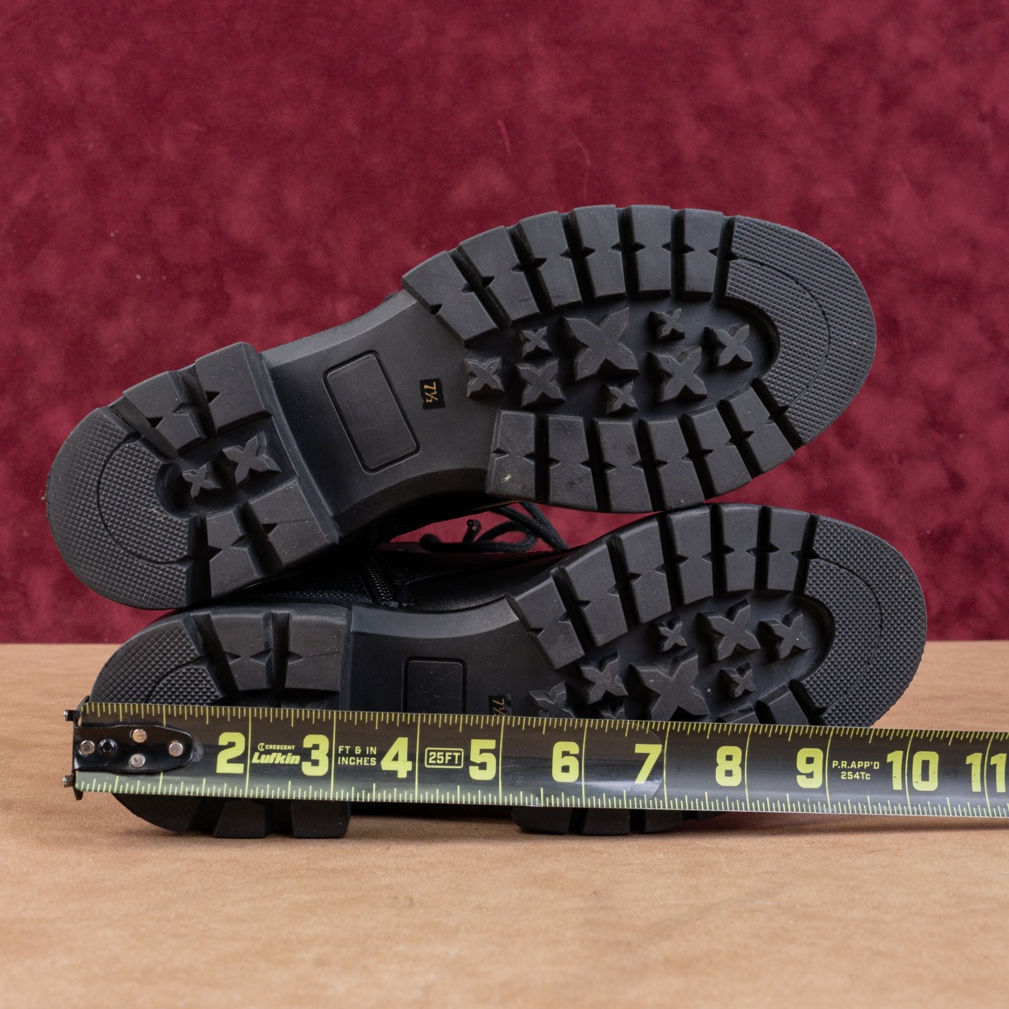 New Condition. No signs of wear on the soles. Model# Jami. Sizing: runs a 1/2 size smaller. Perfect for a 7. Made in Mexico. Leather upper, Leather lining and Lugged Rubber soles. Inset side zipper with front lace-up style closure for easy on and off. Round Toe. Please check photos carefully for more information and details. SKU11887