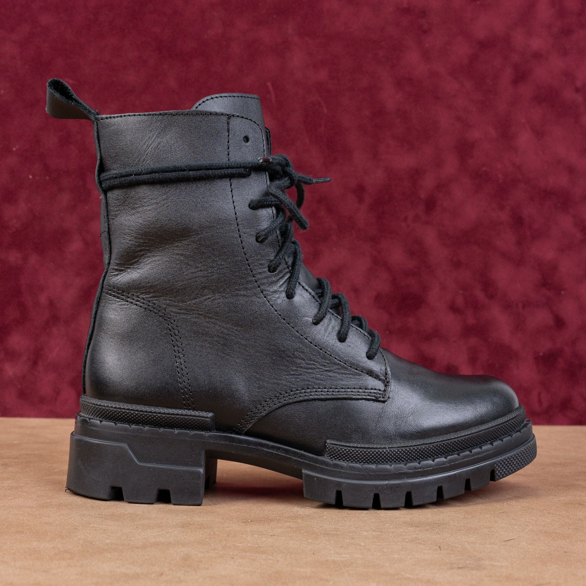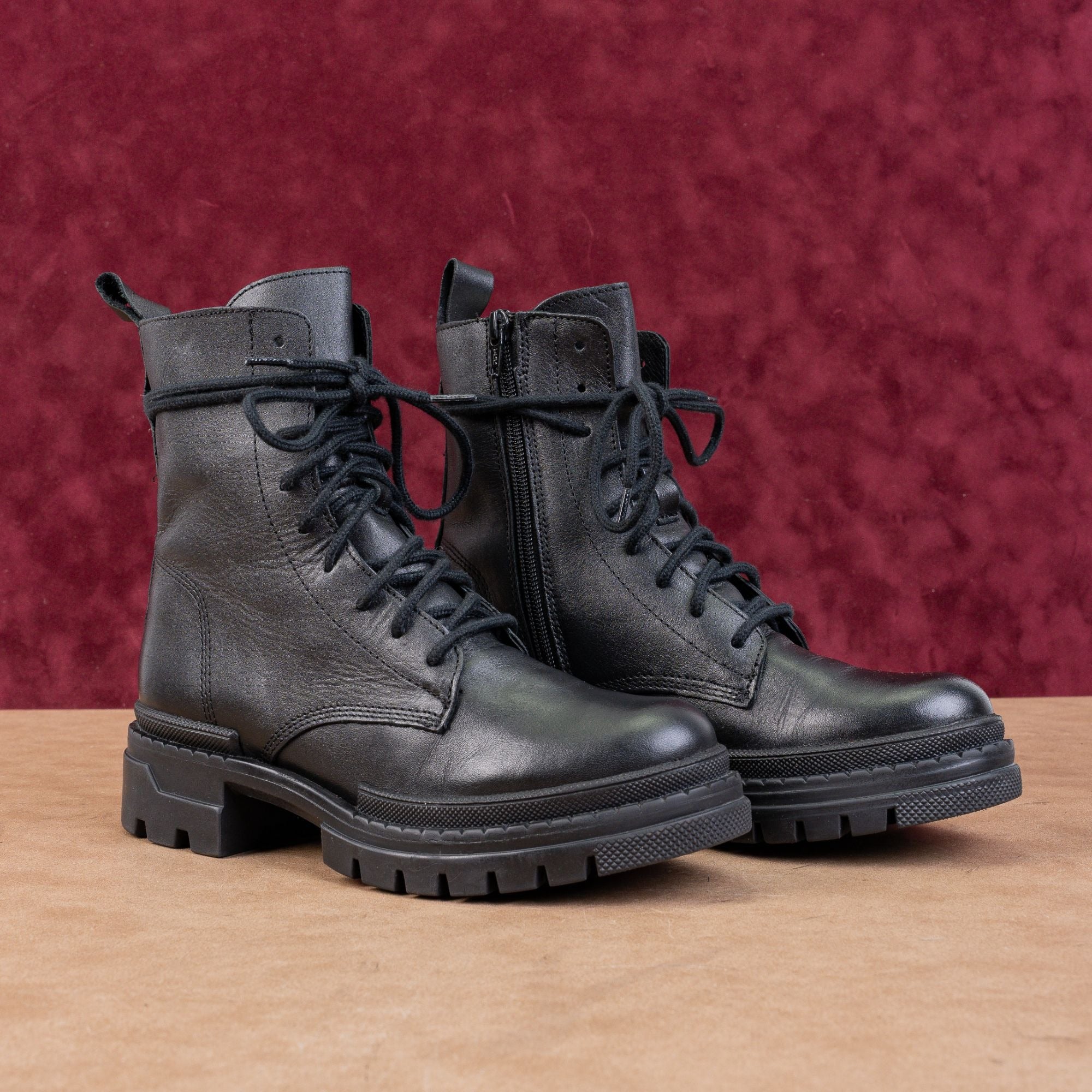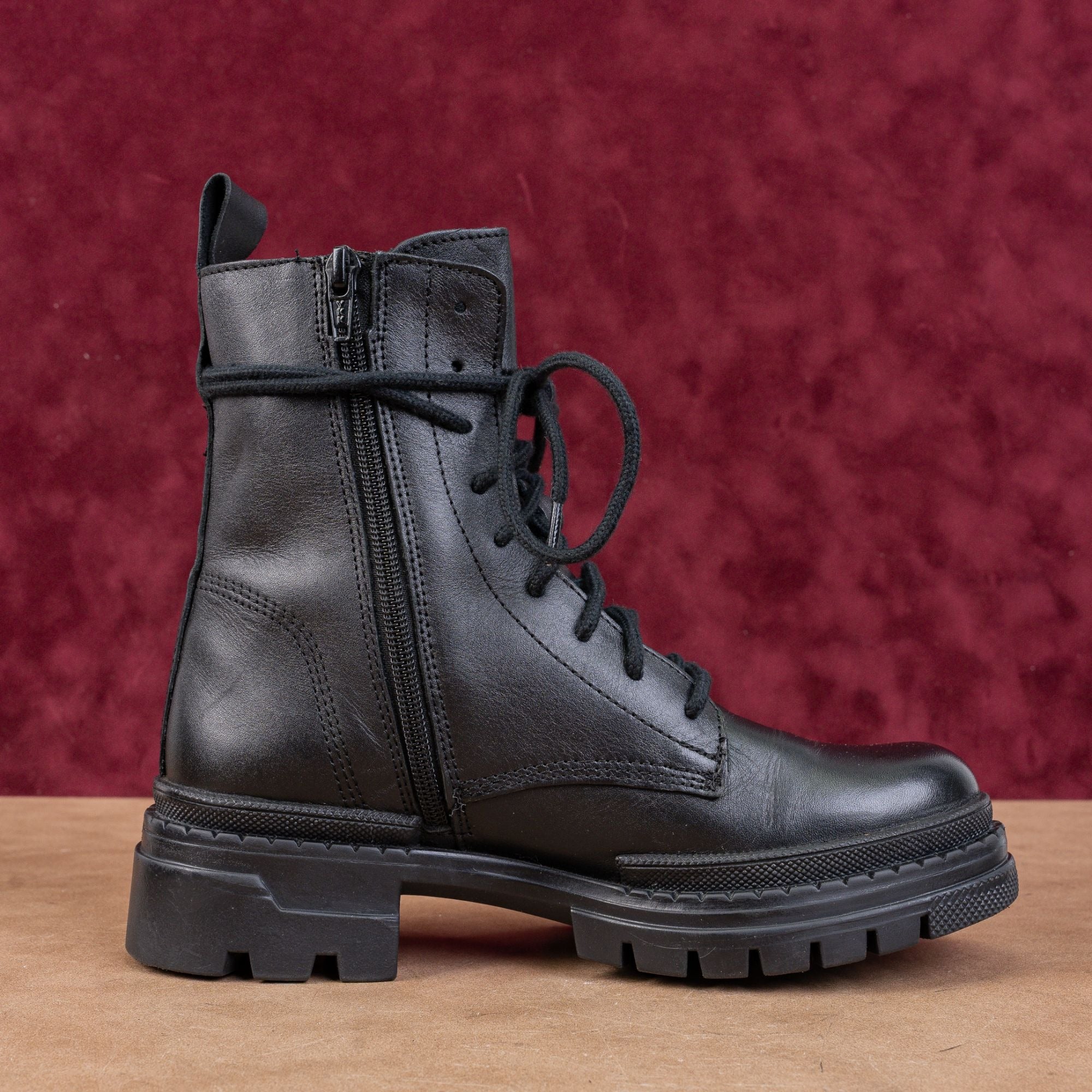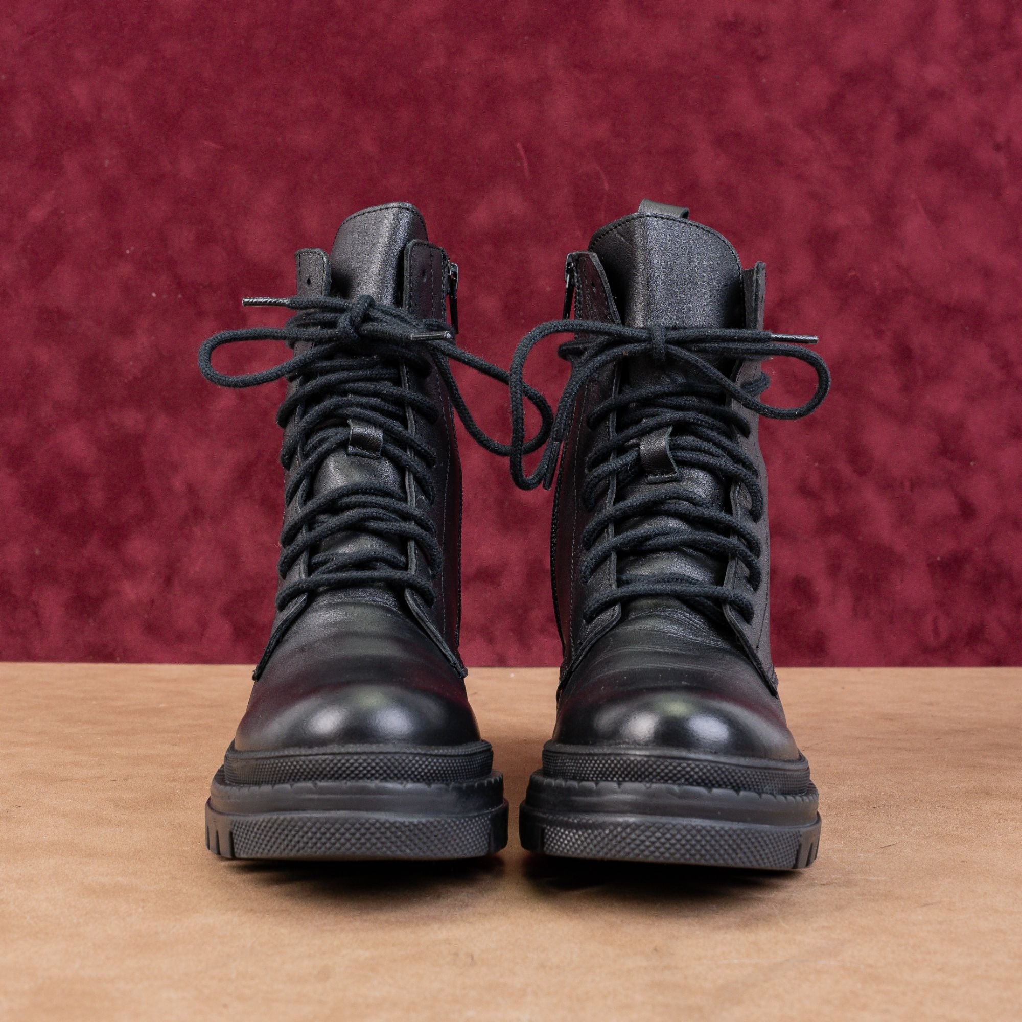 New Condition. No signs of wear on the soles. Model# Jami. Sizing: runs a 1/2 size smaller. Perfect for a 7. Made in Mexico. Leather upper, Leather lining and Lugged Rubber soles. Inset side zipper with front lace-up style closure for easy on and off. Round Toe. Please check photos carefully for more information and details. SKU11887