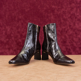 Larroude Women Croc Dark Brown Leather Dress Fashion Ankle Boots sz 10