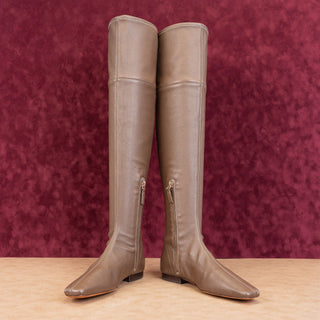 Stuart Weitzman Wmn Yuliana Slouch Cream Leather Dress office Zip Knee Boots 9
