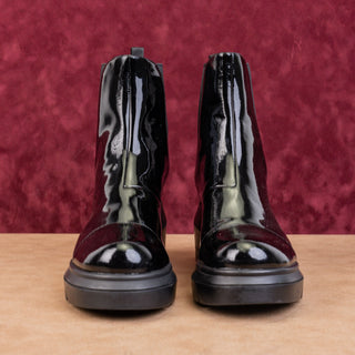 Stuart Weitzman Women Norah Chelsea Black Patent Leather Platform Boots size 9