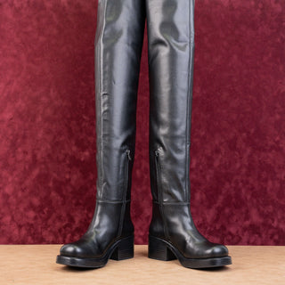 Max Mara Women Black Fine Italian Leather Vintage Dress Knee Boots 6.5US EUR37