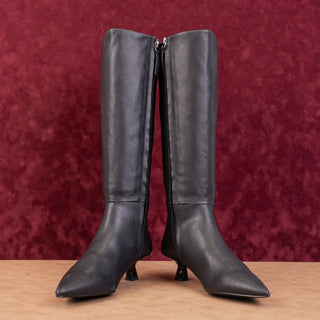 Franco Sarto Women Jennalyn Black Vegan Leather Kitten Heel Knee Boots sz 7