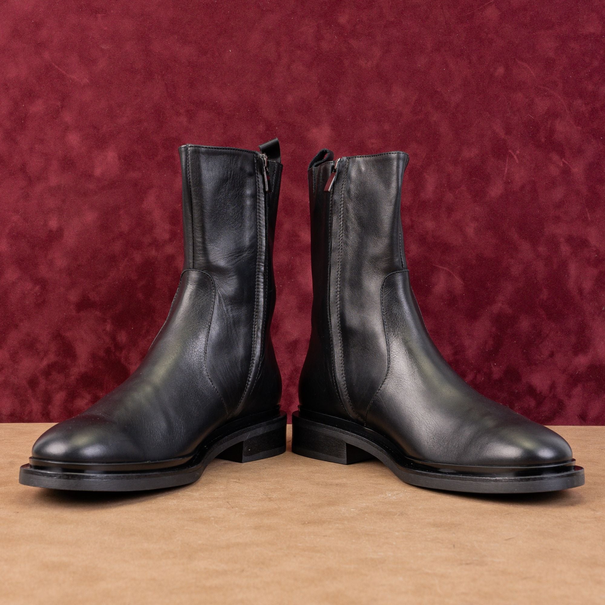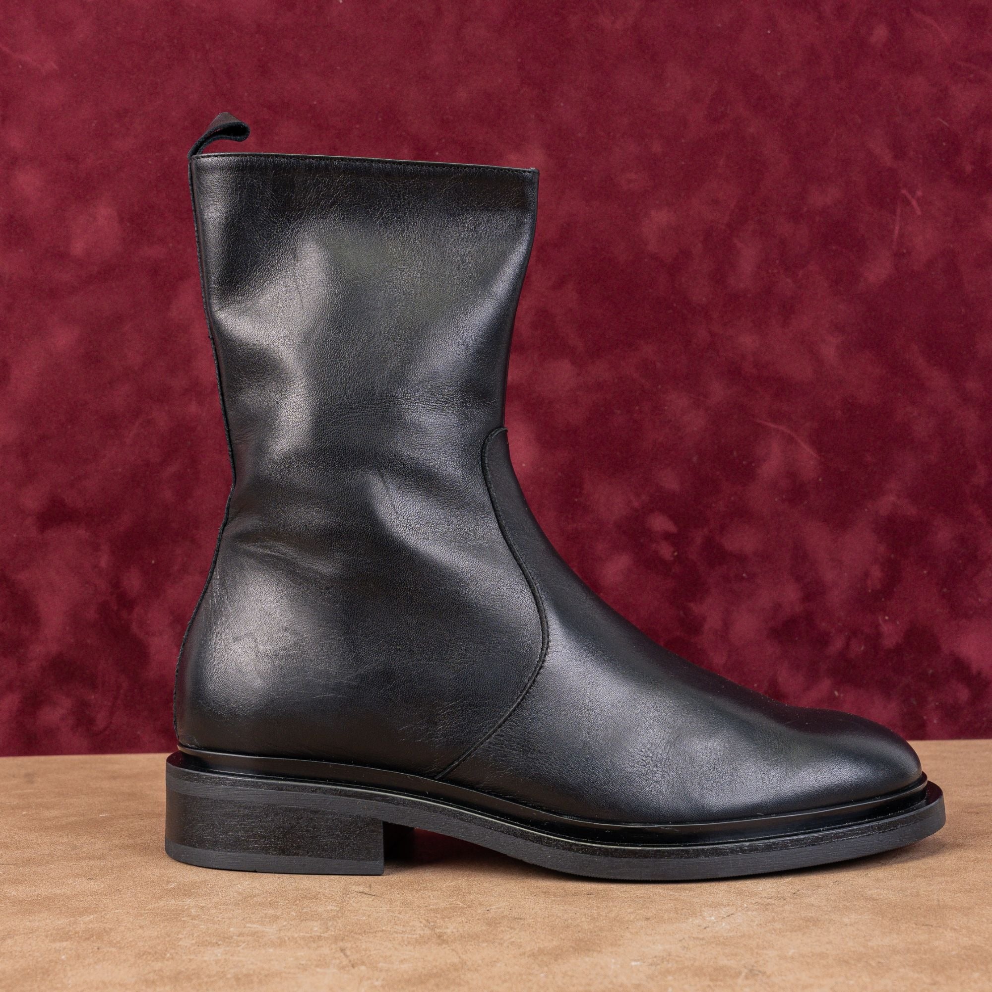 New Condition. No signs of wear on the soles. Never Worn. Made in Italy. Model # Blaze. Retail $450. Leather Upper, Leather Lining and Rubber Soles. Side zipper style for easy on and off. Please check photos carefully for more information and details. SKU12106