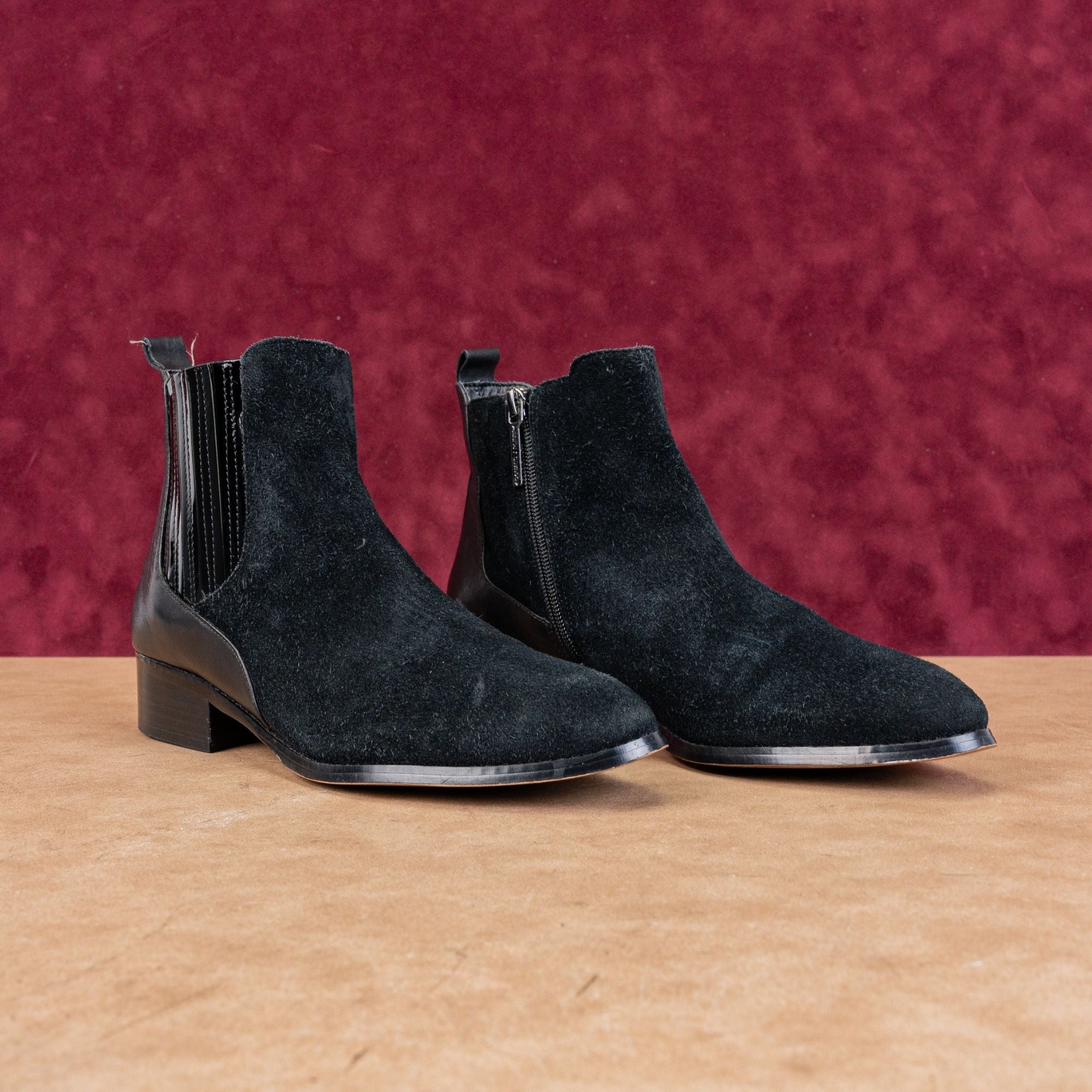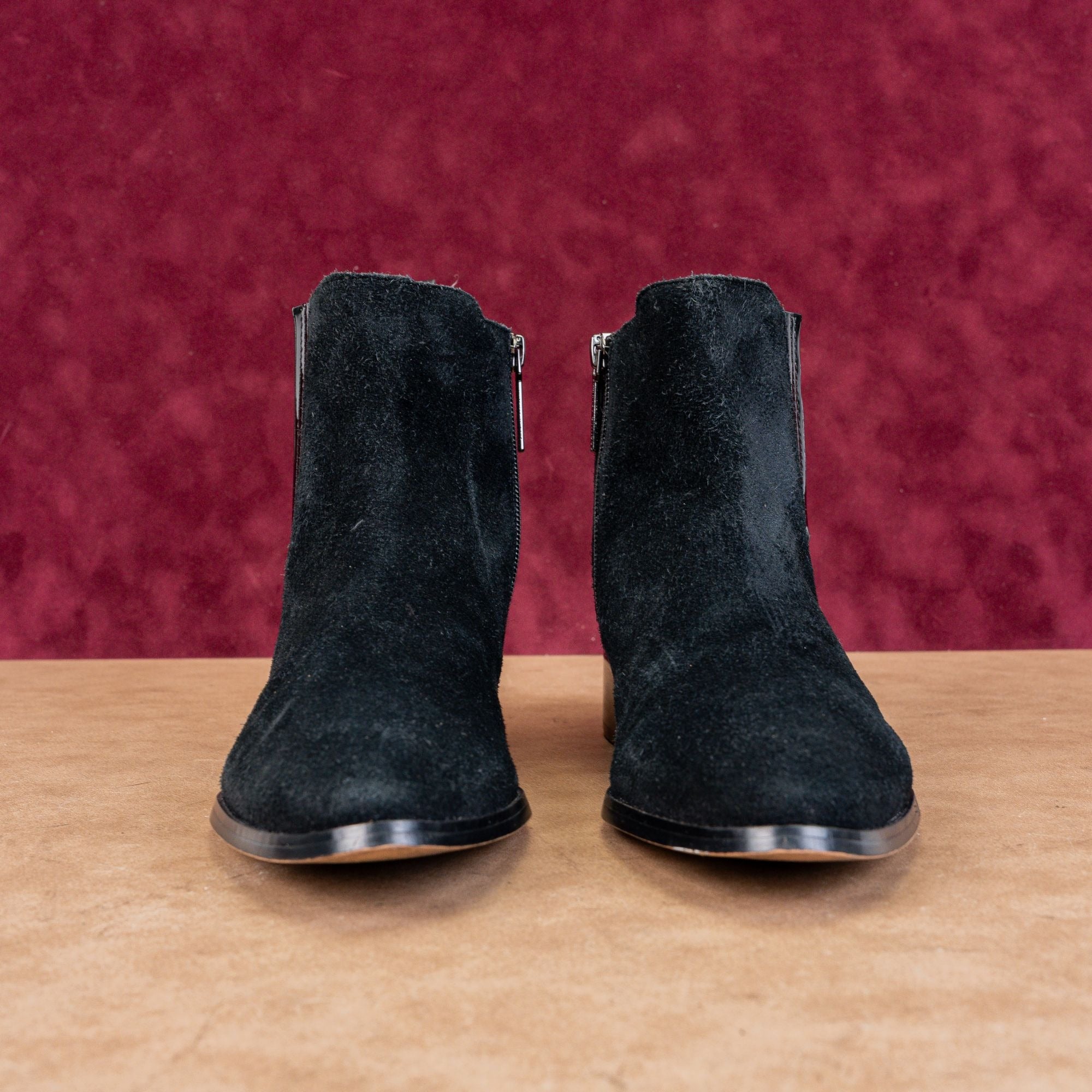 Excellent Condition. Normal signs of wear on the soles. Pre-Loved. Made in China. Model # Banks. Retail $250. Leather Upper, Fabric Lining and Rubber Soles. Side zipper style for easy on and off. Please check photos carefully for more information and details. SKU 11344