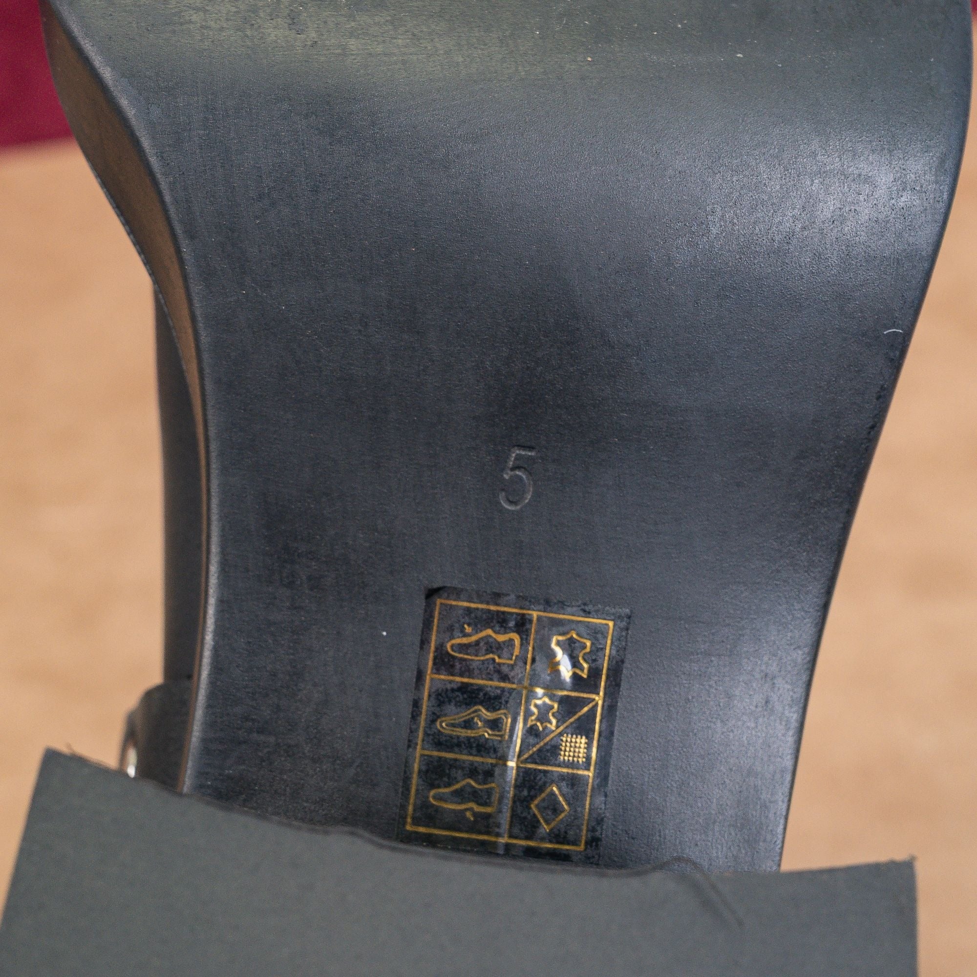 New Condition. No signs of wear on the soles. Never Worn. Made in China. Retail $250. Leather Upper, Fabric Lining and Rubber Soles. Slip-on style for easy on and off. SKU 11298