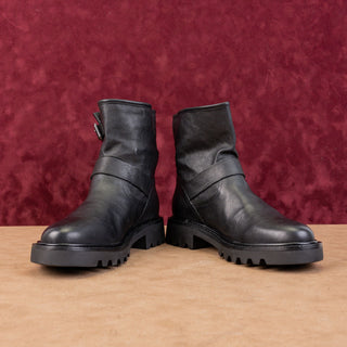 Frye Women Veronica Slouch Black Leather Moto Biker Buckle Boots size 6