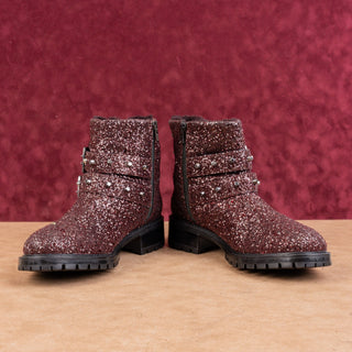 Ross&Snow Wmn Distress indigo Purple Metallic Stud Buckle Moto Bike Boots sz 9.5