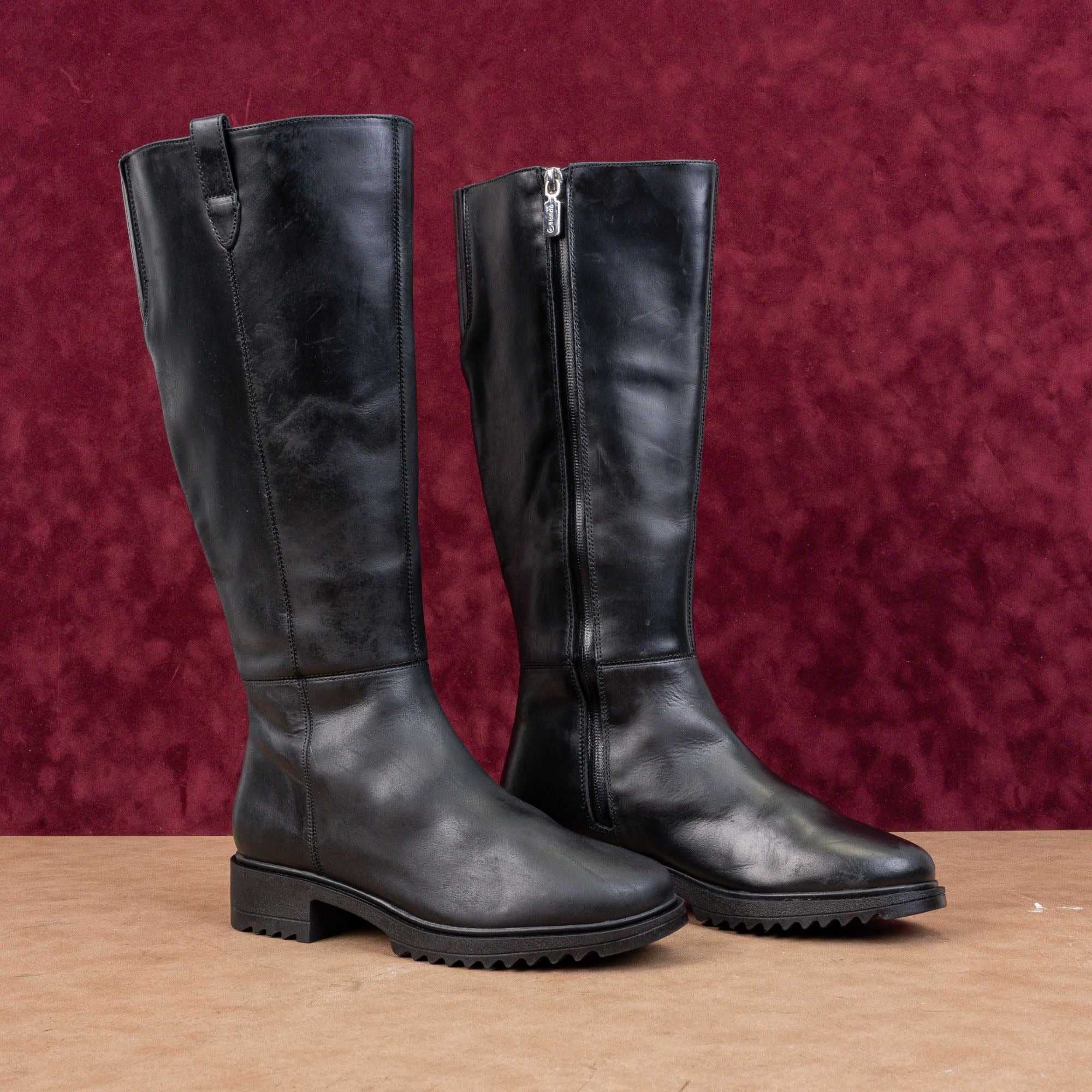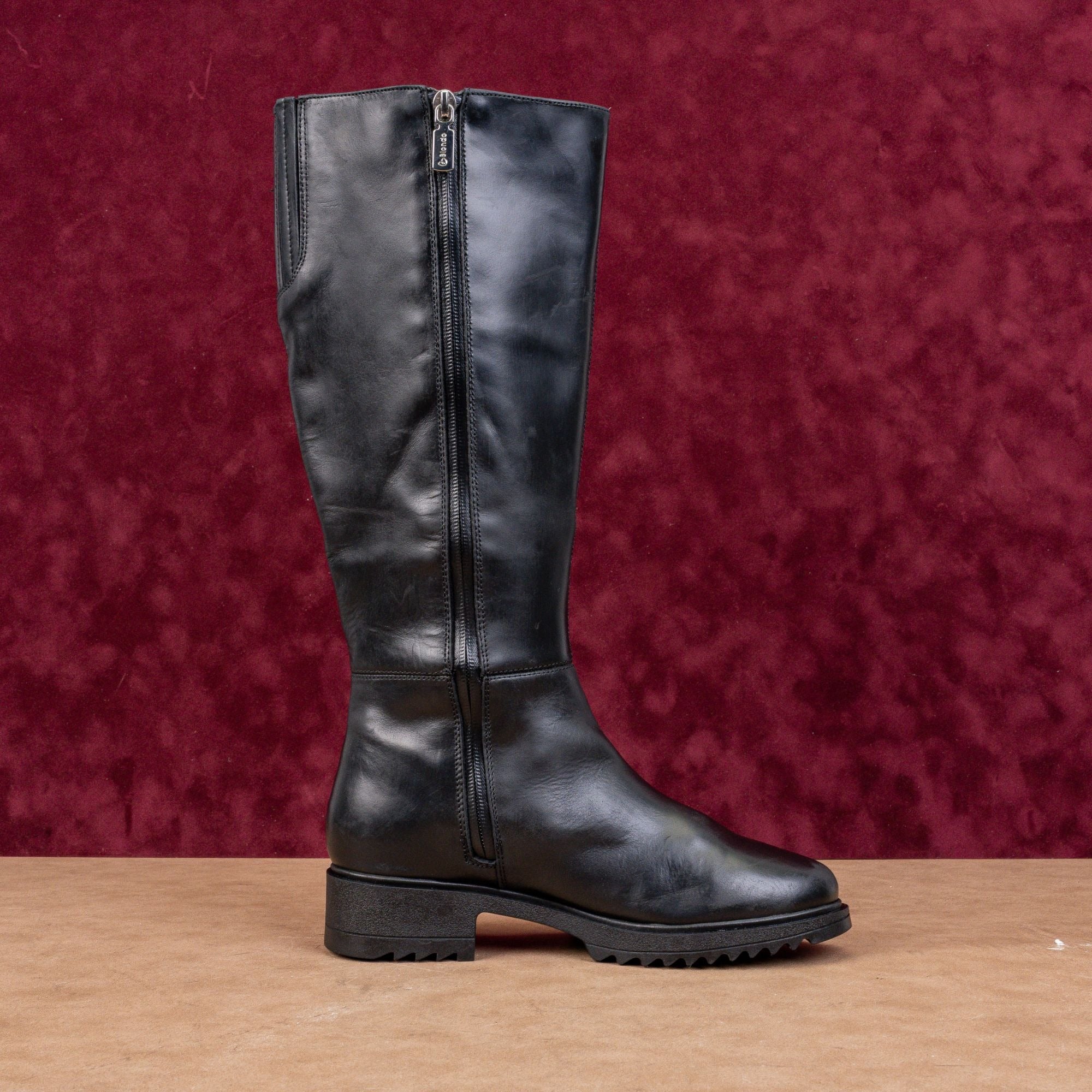 Crafted from premium waterproof black leather, this knee-high boot features Blondo’s signature AquaProtect® seal to keep feet dry. A sleek equestrian silhouette with a convenient side zip.