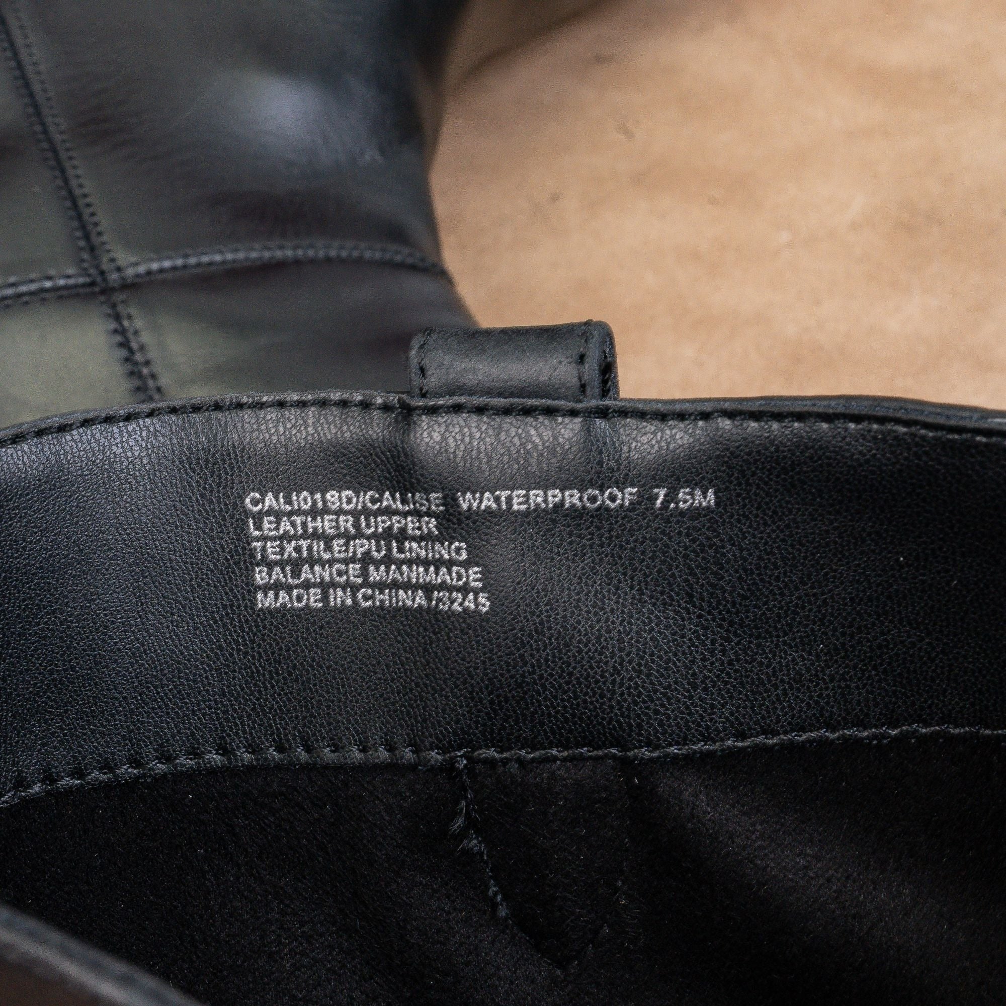 New Condition. No signs of wear on the soles. Never Worn. Made in China. Model # Calise. Retail $179. Leather Upper, Fabric Lining and Rubber Soles. Side zipper style for easy on and off. Please check photos carefully for more information and details. SKU11525