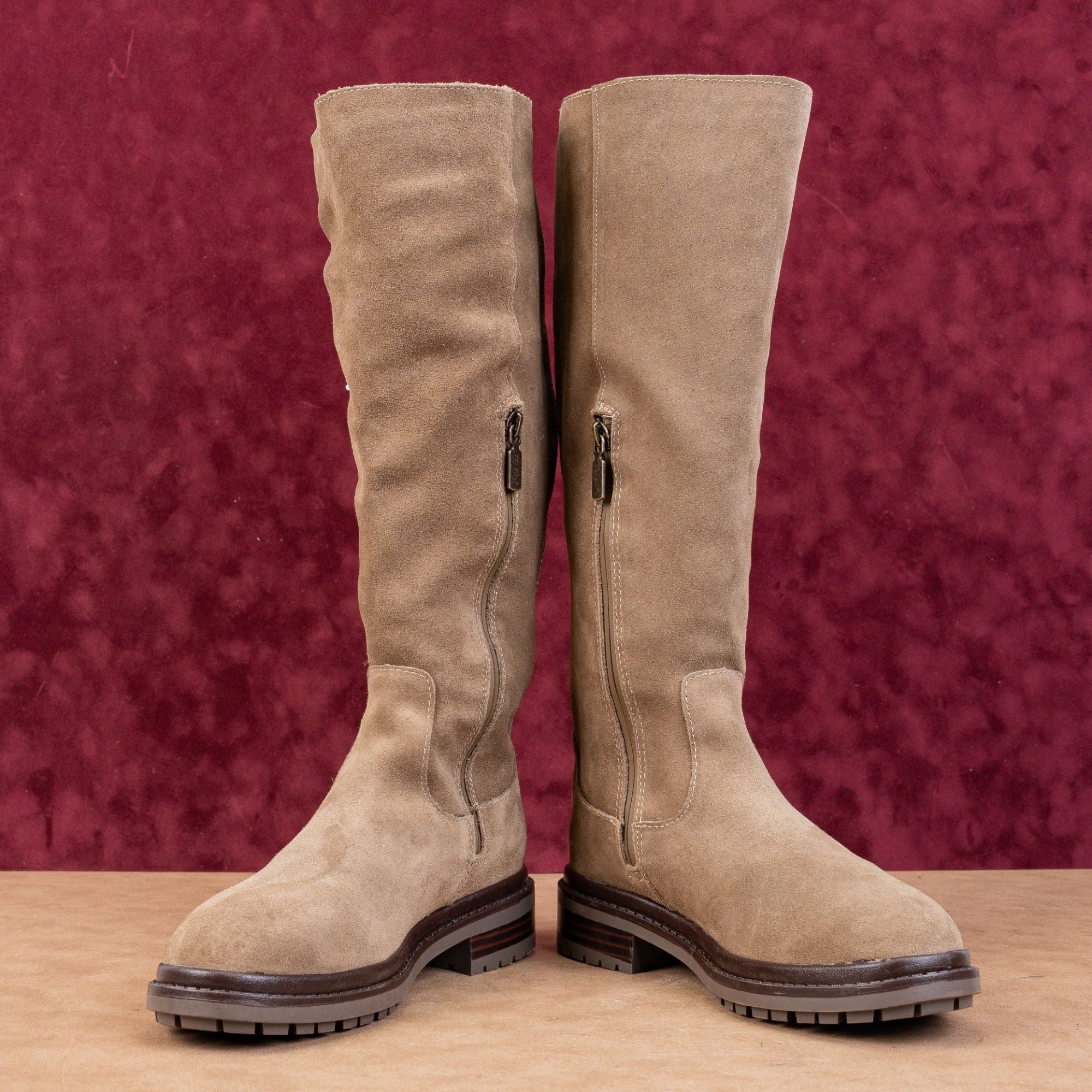 New Condition with tags. No signs of wear on the soles. Never Worn. Made in China. Model # Reagan. Retail $250. Suede Upper, Fabric Lining and Rubber Soles. Side zipper style for easy on and off. Please check photos carefully for more information and details. SKU11912