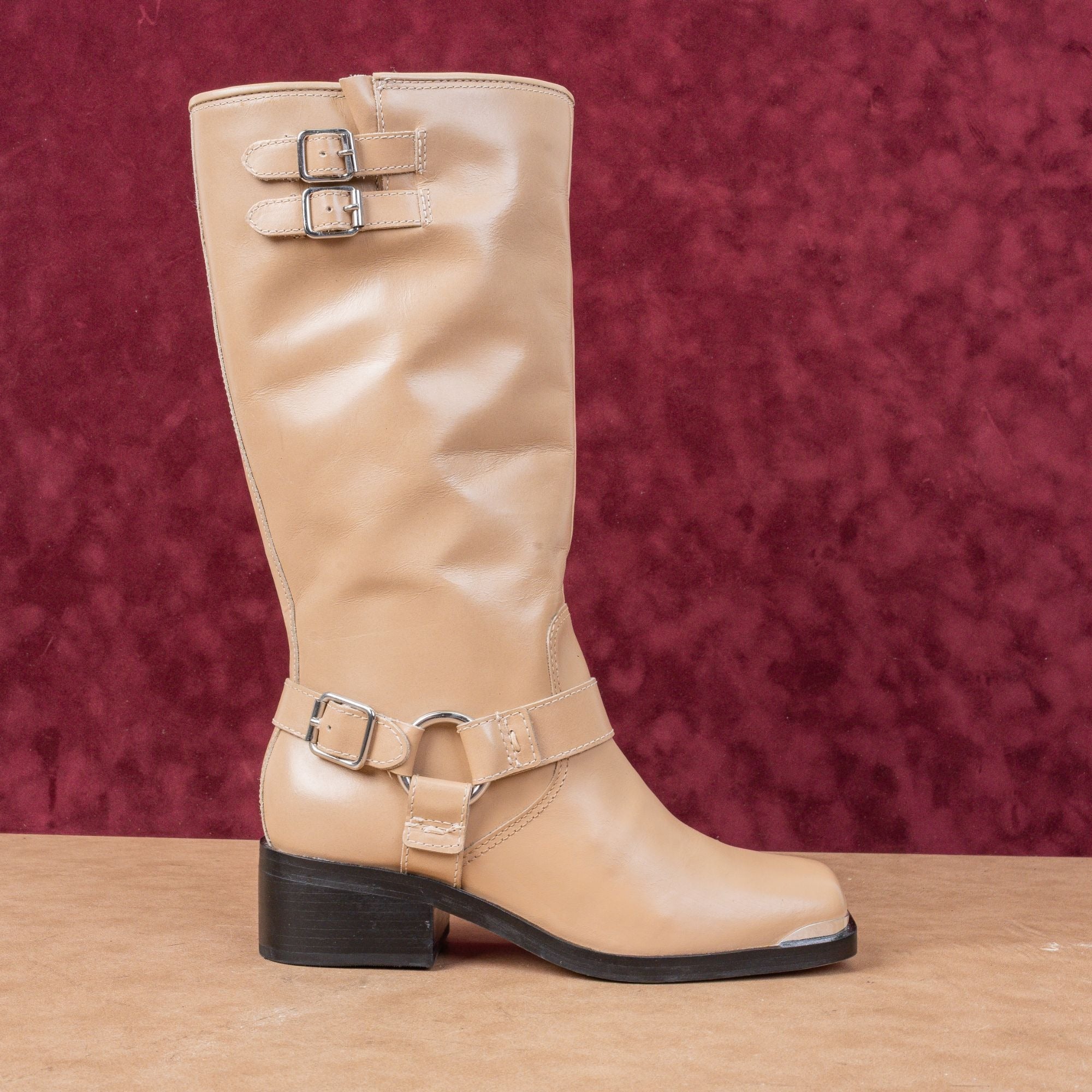 Dolce Vita Women Evi Tan Leather Moto Biker Metal Harness Boots sz 8.5