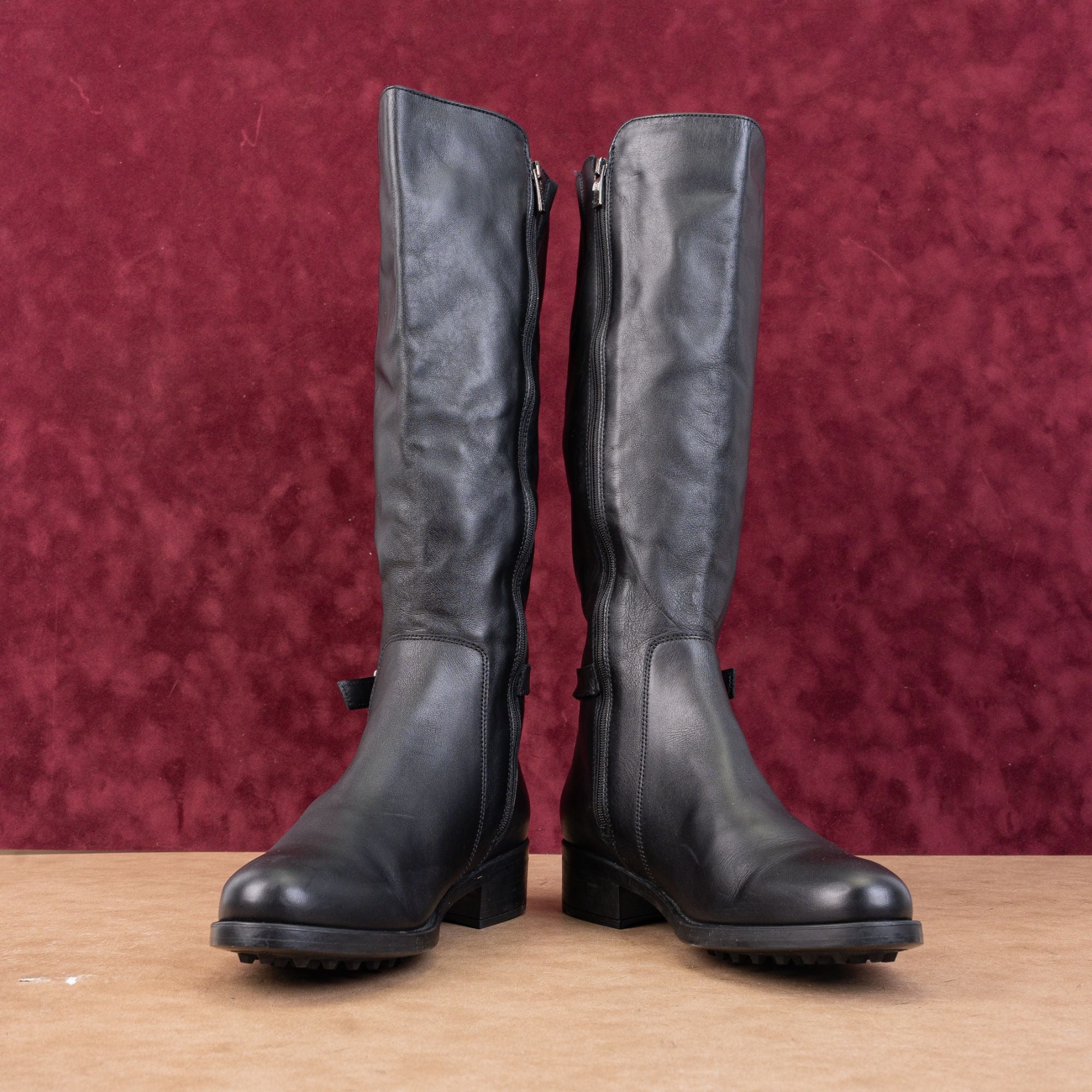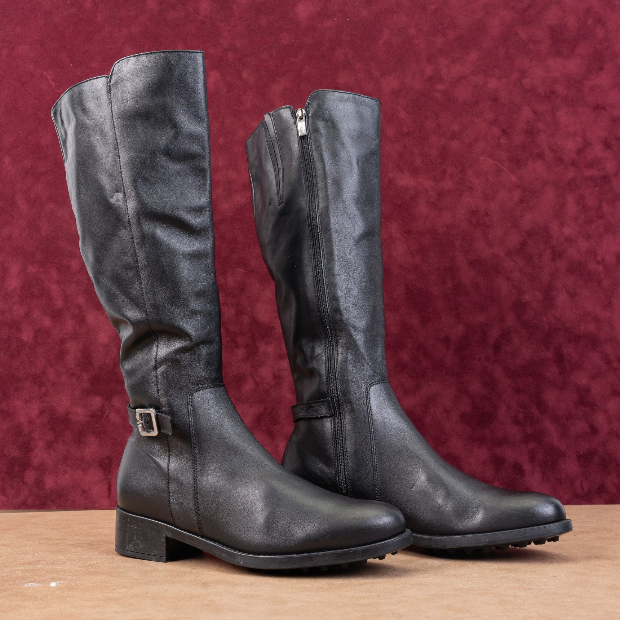 La Canadienne Women Silvana Black Leather Waterproof Buckle Zip Knee Boots sz 10