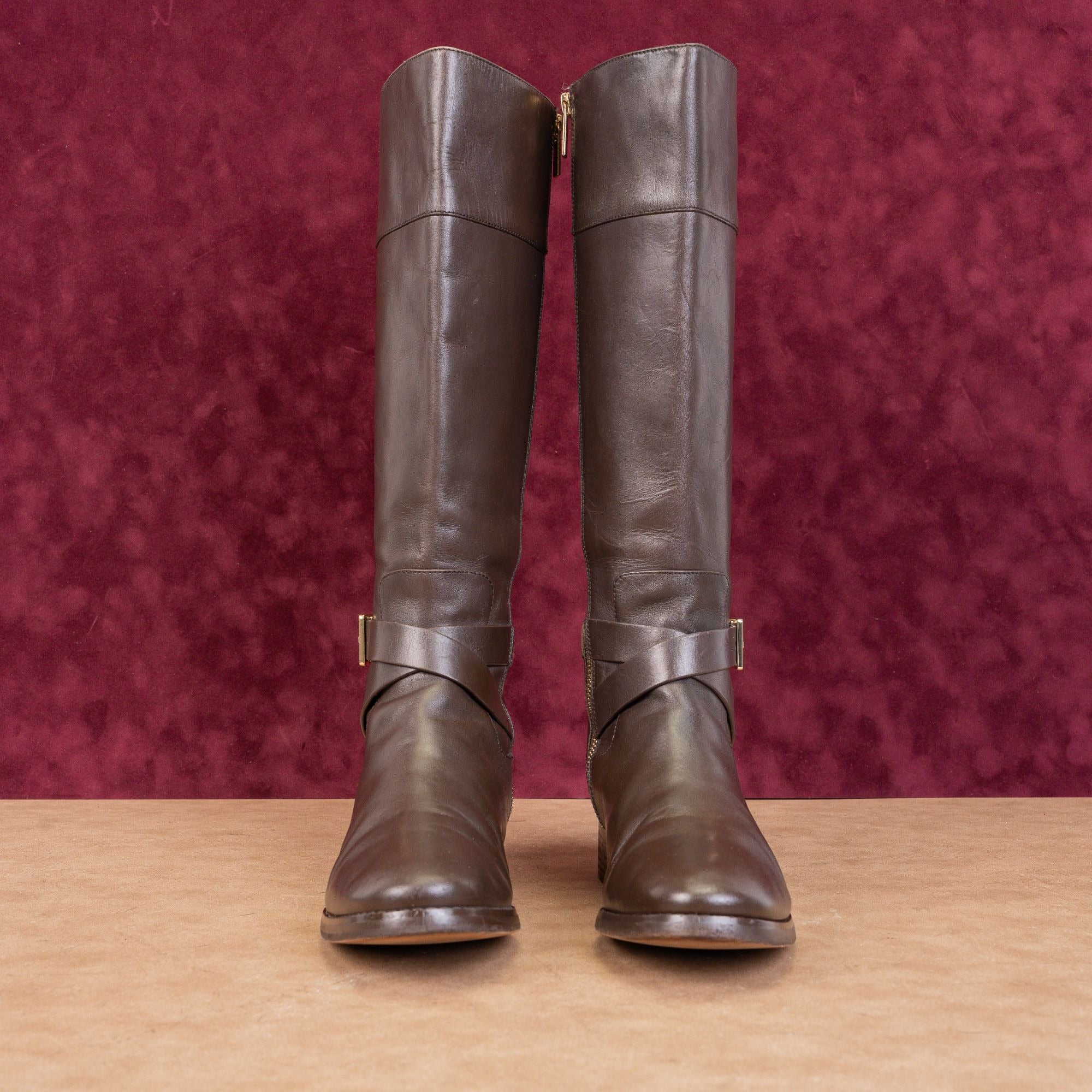 Selling these gorgeous and classic Michael Kors "Bryce" knee-high boots in a Women's size 8.5. They feature a sophisticated two-tone design with a sleek black leather body and rich brown leather accents.
