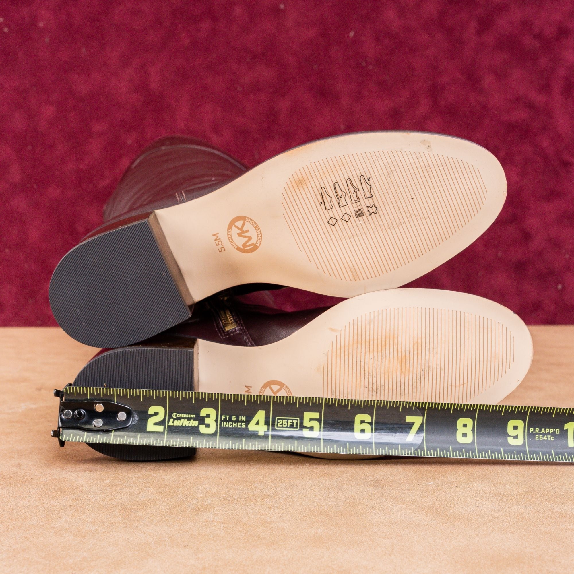 Step into luxe comfort with these rich maroon leather boots, featuring Michael Kors' iconic blend of jet-set elegance and downtown cool.
