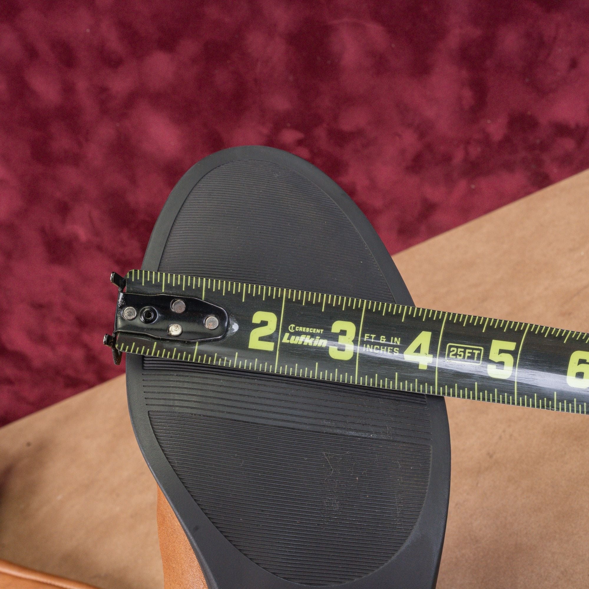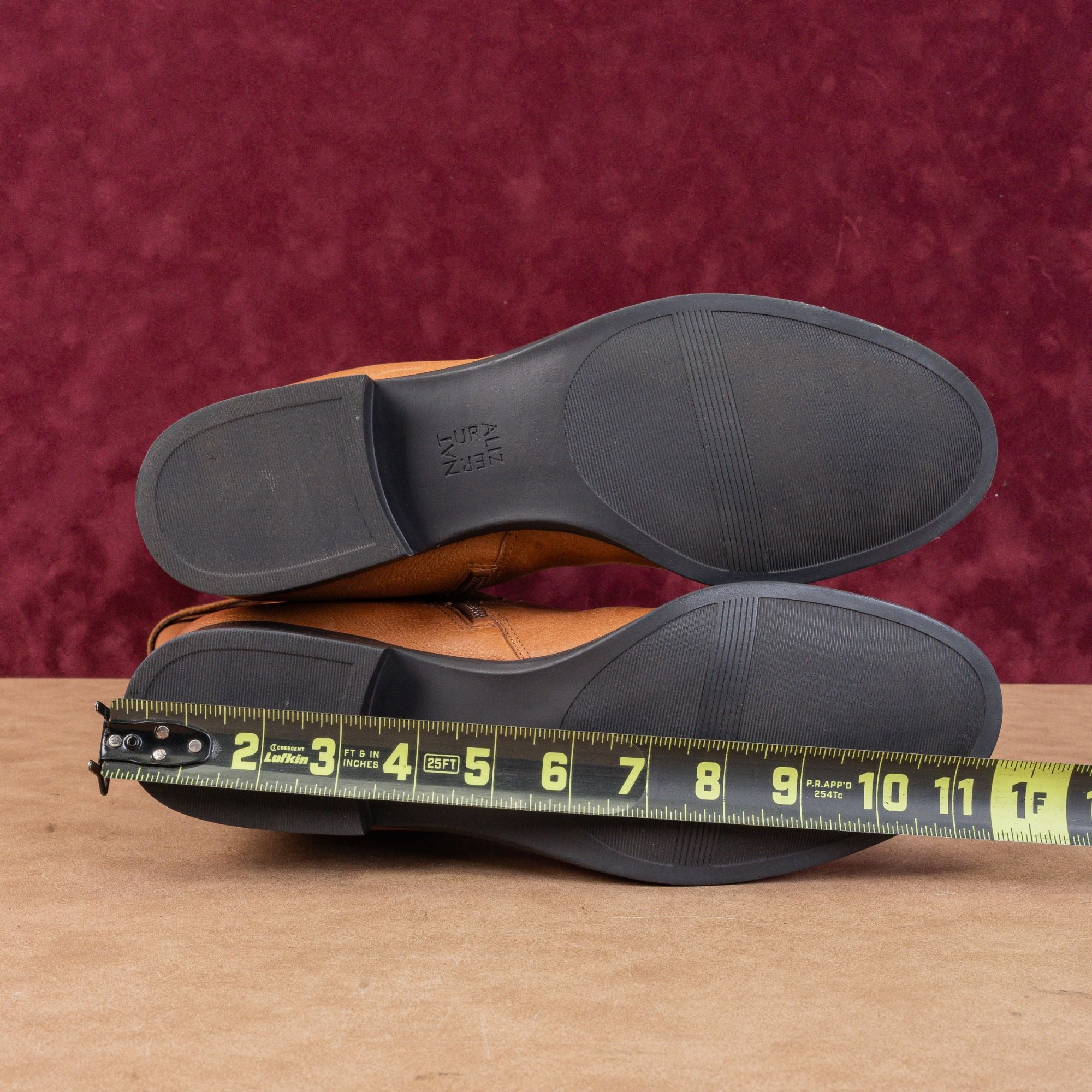 Like New Condition. Minimal signs of wear on the soles. Display Model. Made in China. Model # Jesse. Retail $250. Leather Upper, Fabric Lining and Rubber Soles. Side zipper style for easy on and off.