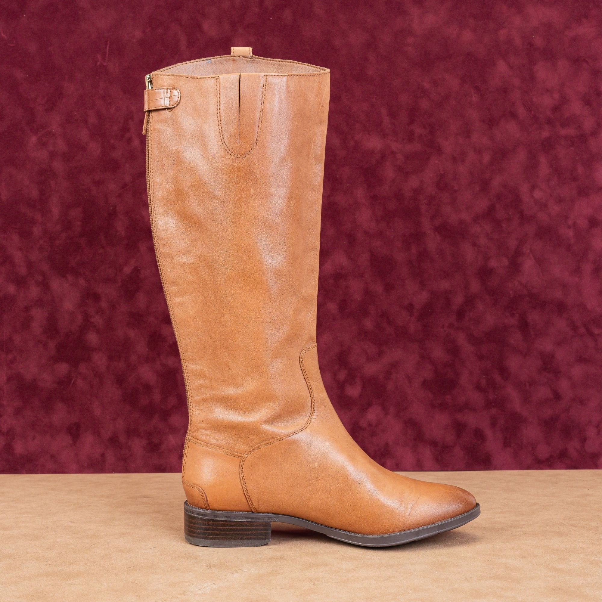 Selling the legendary Sam Edelman "Penny" knee-high boots in a Women's size 10. They are crafted from a stunning, classic tan leather—the perfect warm brown for the autumn season.