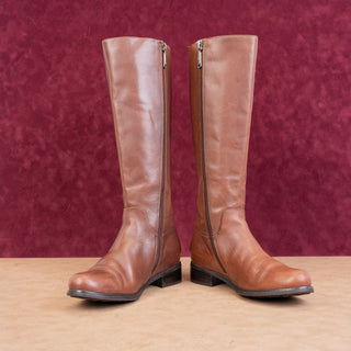 Clarks Women Derby Tan Leather Vintage Retro 90s Riding Knee Boots sz 7