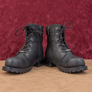 Harley Davidson Women Archer Black Leather Moto Biker Steel Toe Work Boots sz 8