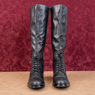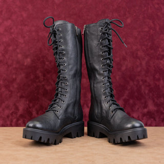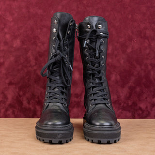Schutz Women Moly Black Leather Lace-up Festival Combat Knee Boots sz 5