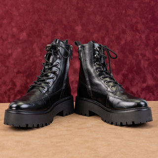 Charles David Italy Women Hound Platform Black Leather Combat Boots 6.5US EUR37