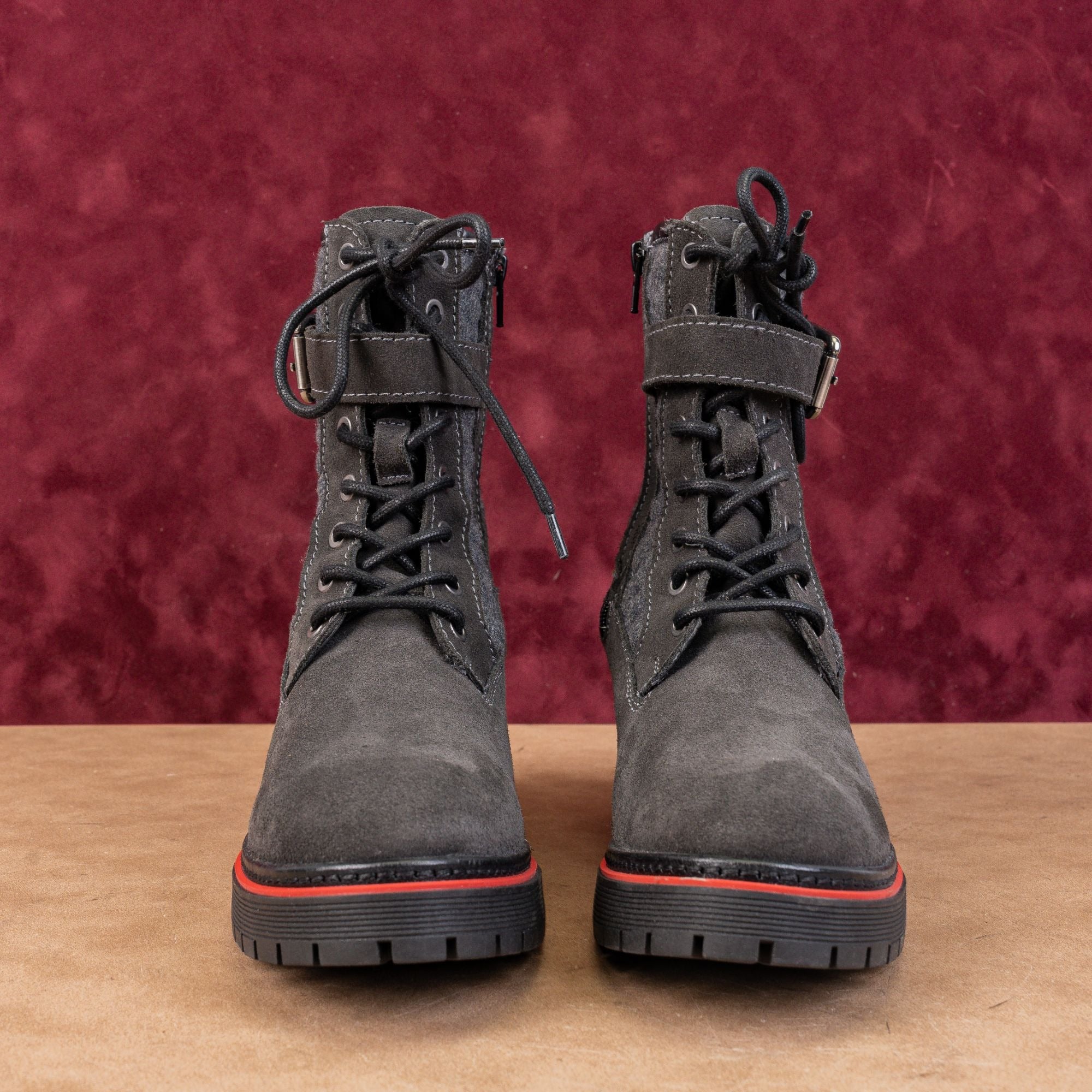 Bos&Co Women Zing Waterproof Grey Suede Zip Lace-up Winter Boots 8-8.5US EUR39