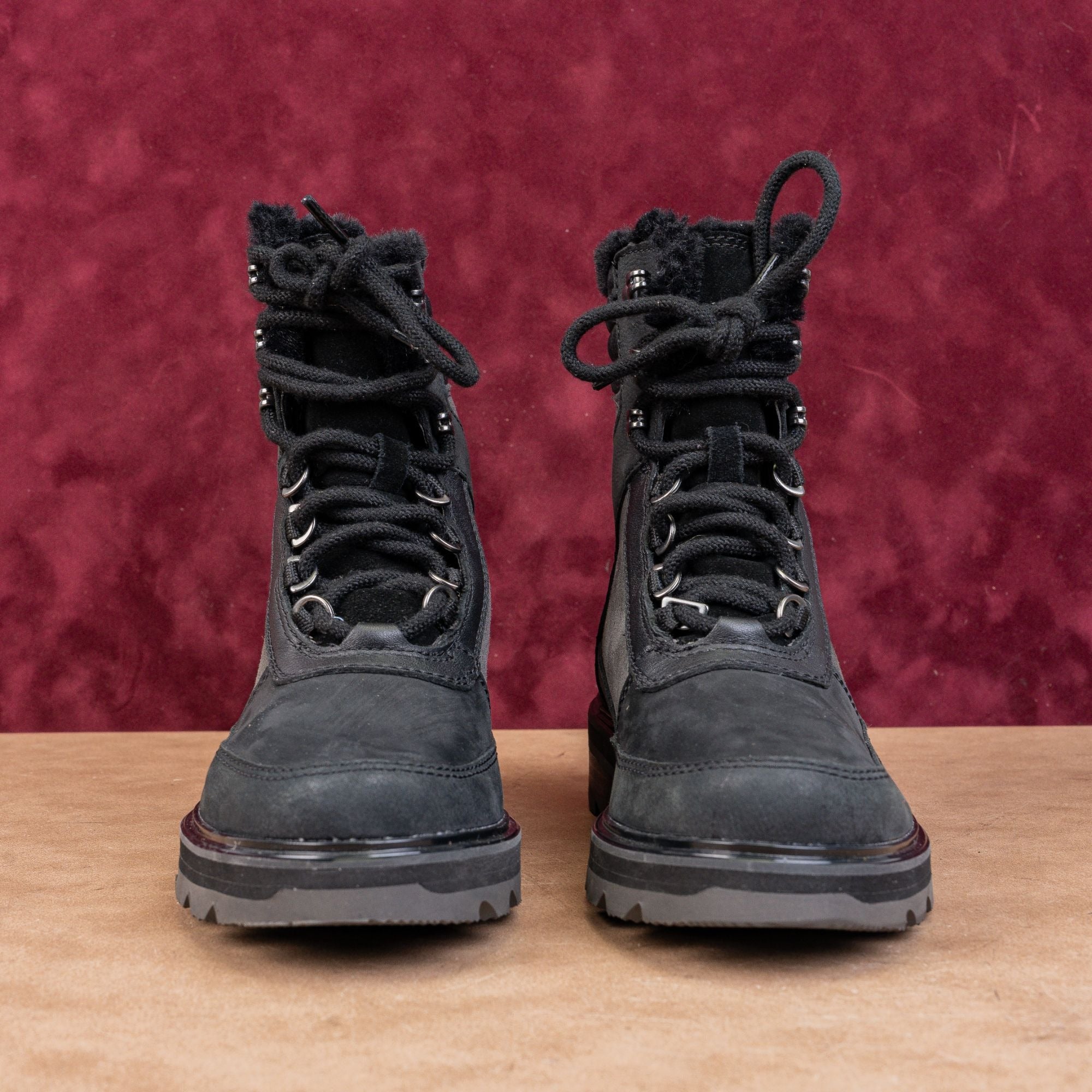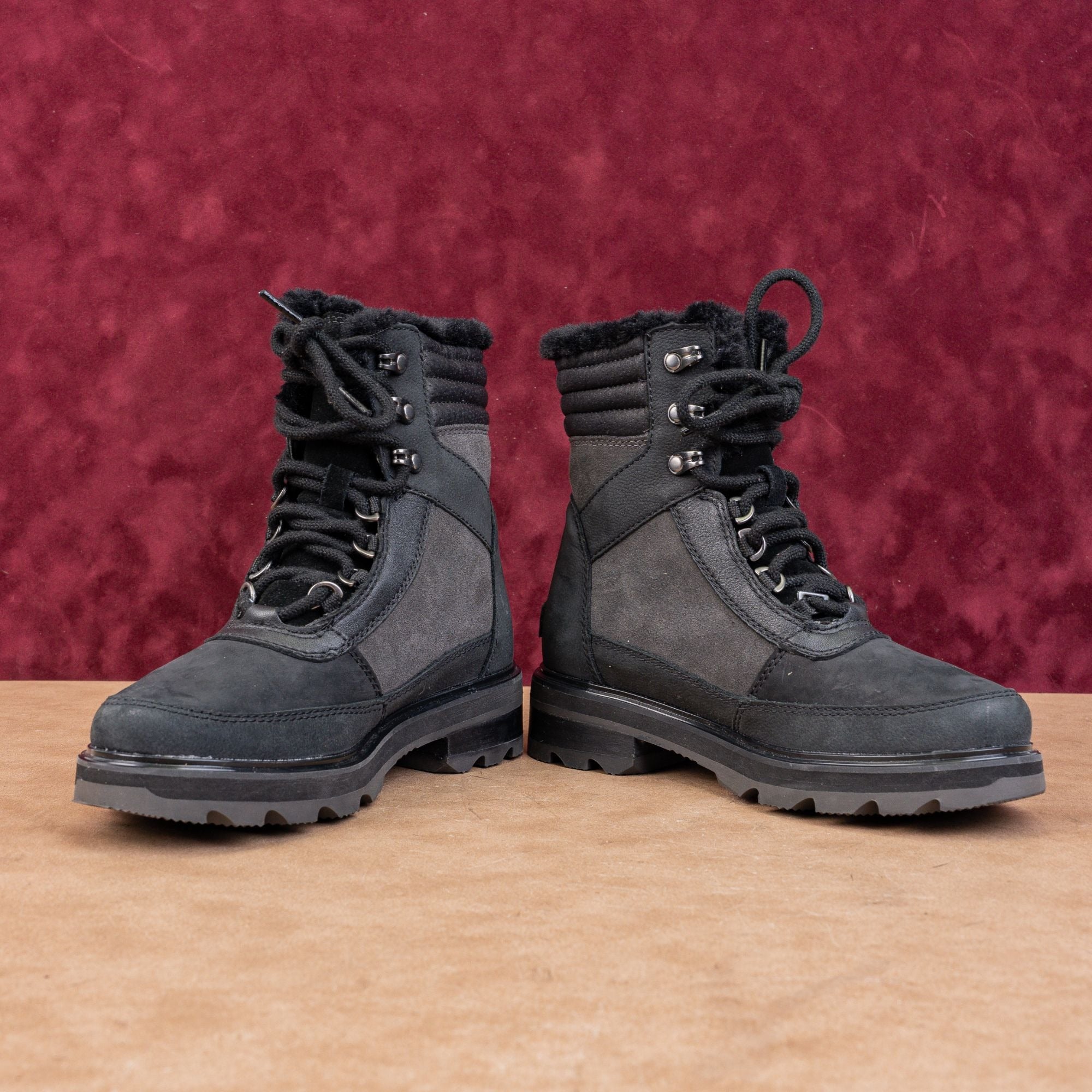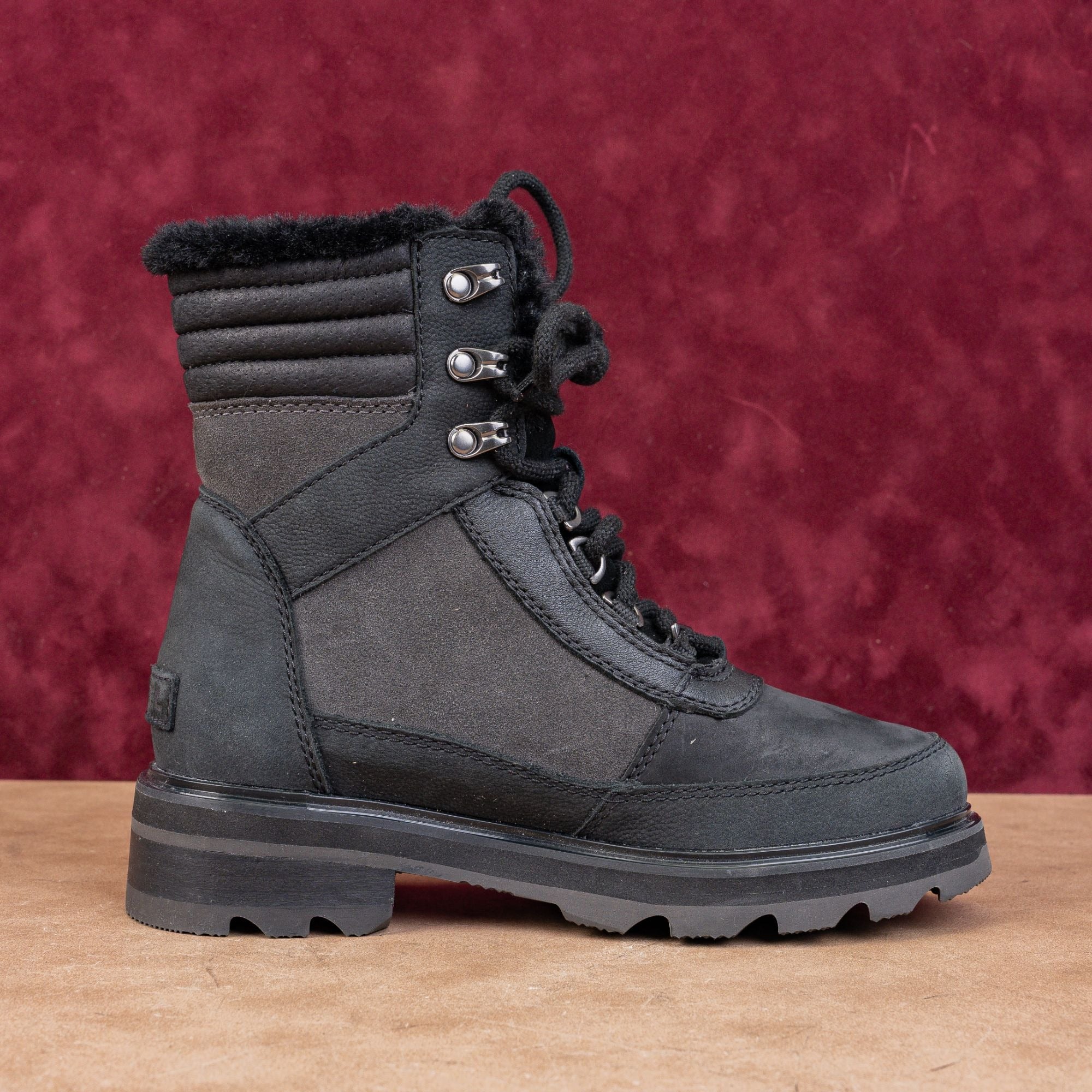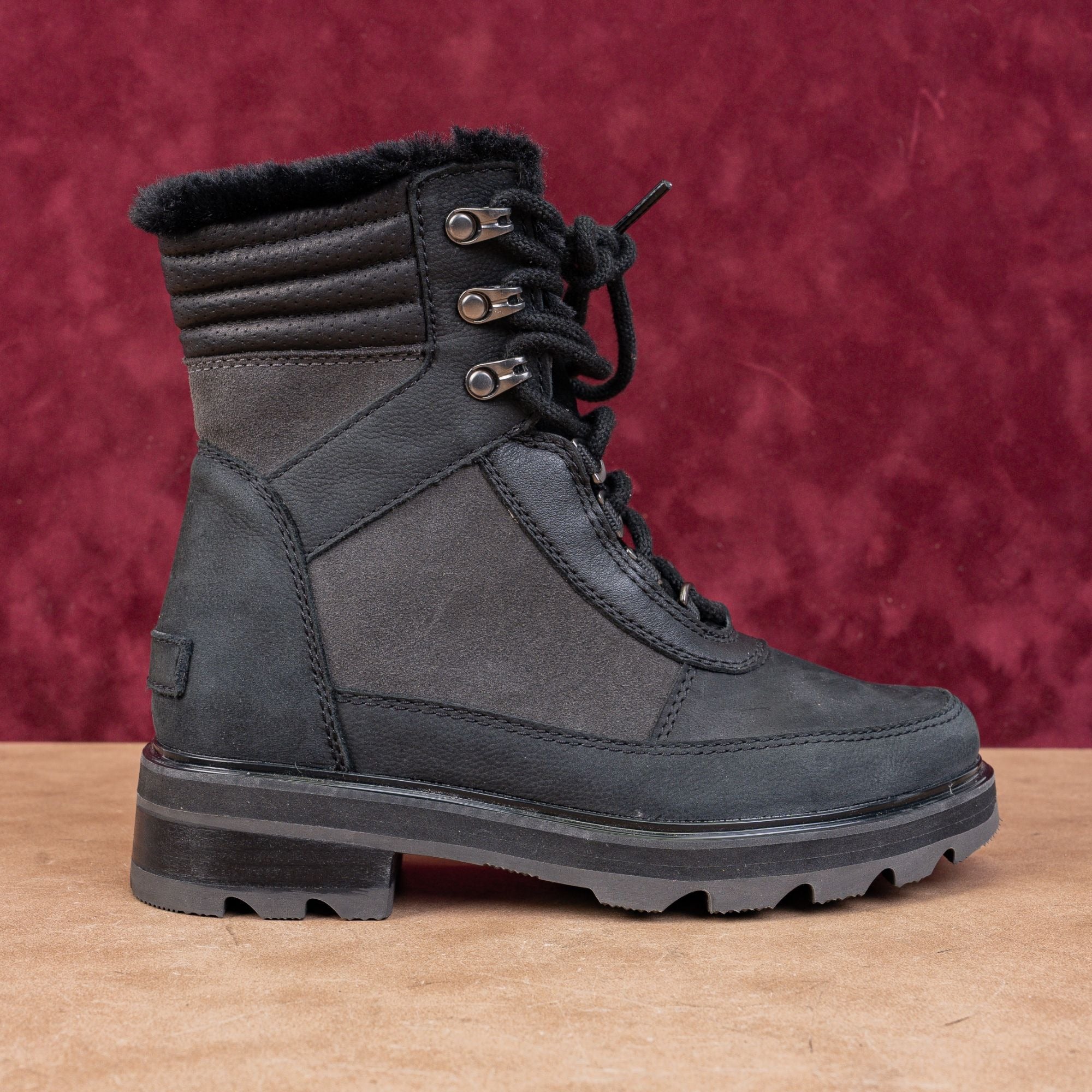 Sorel Women Lennox Lace Cozy STKD Waterproof Black Leather Ankle Boots Sz 6