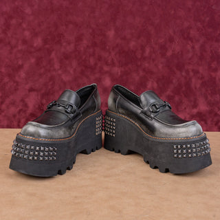 Zigi Women Yaris Studded Platform Goth Distress Black Leather Loafer Sz 10