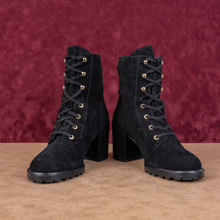 Stuart Weitzman Women Savannah Black Suede Lace-up Granny Victorian Boots sz 8