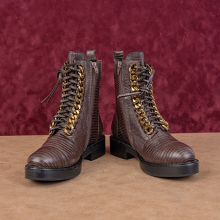 Jeffrey Campbell Wmn Damon Croc Print Brown Leather Lace Up Ankle Combat Boots 7