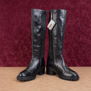Geox Women Damiana Black Leather Lug Sole Riding Knee Boots 7.5US EUR38