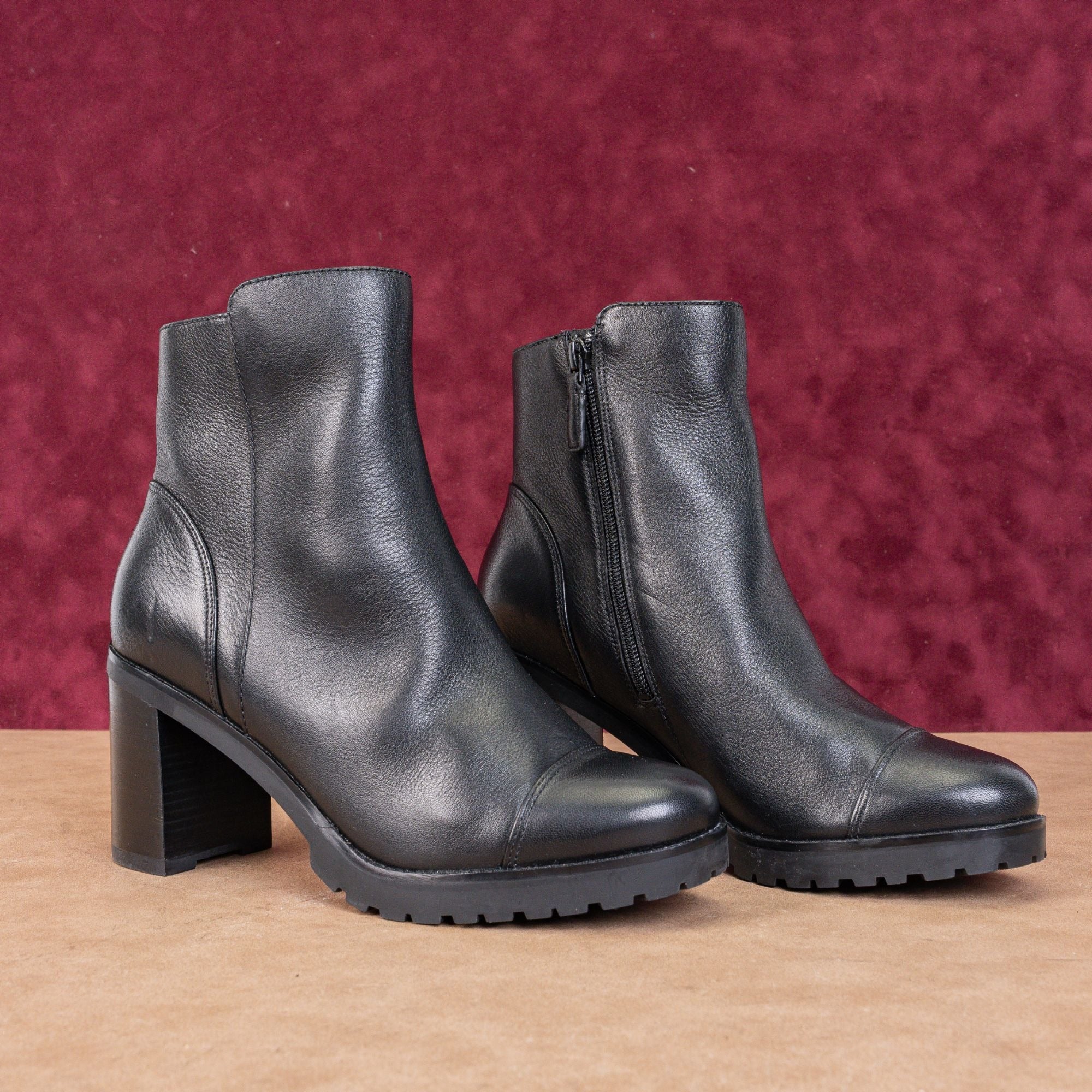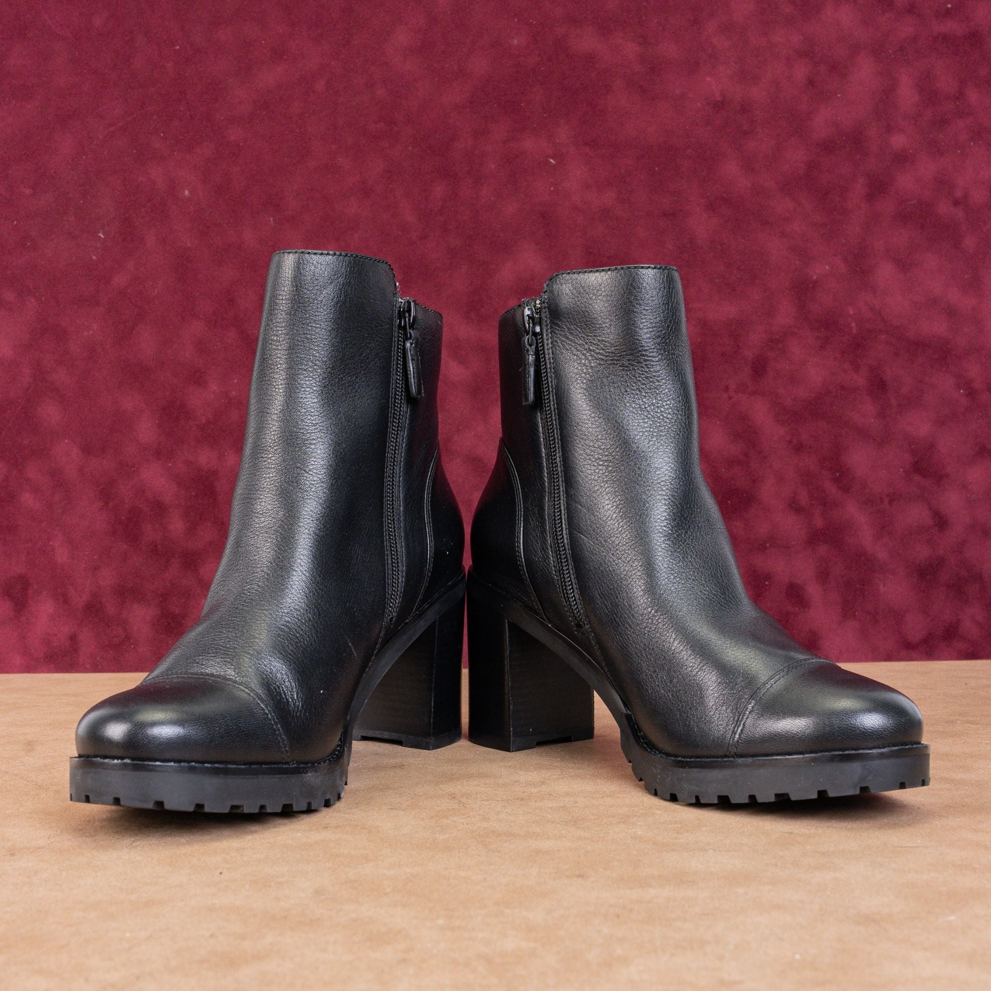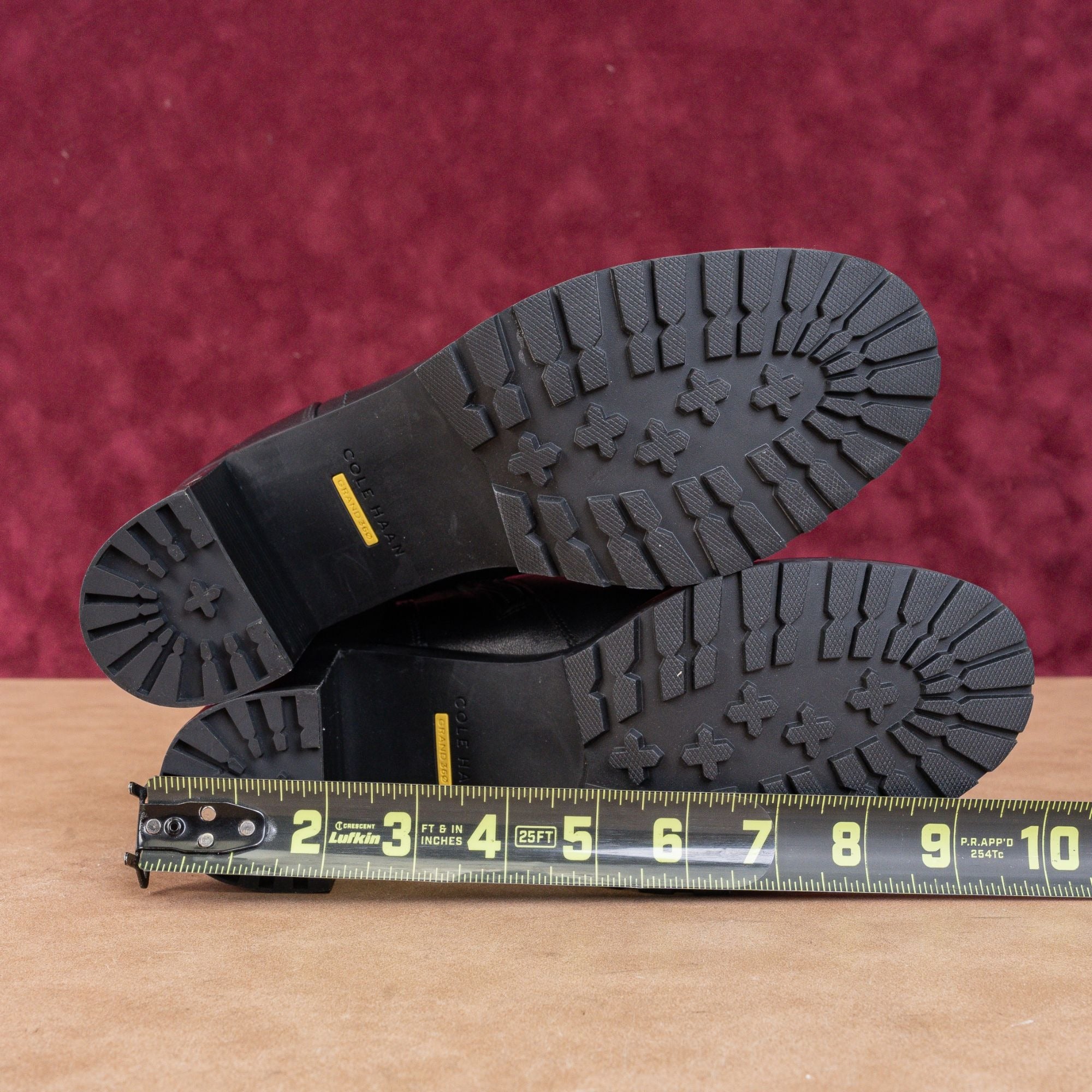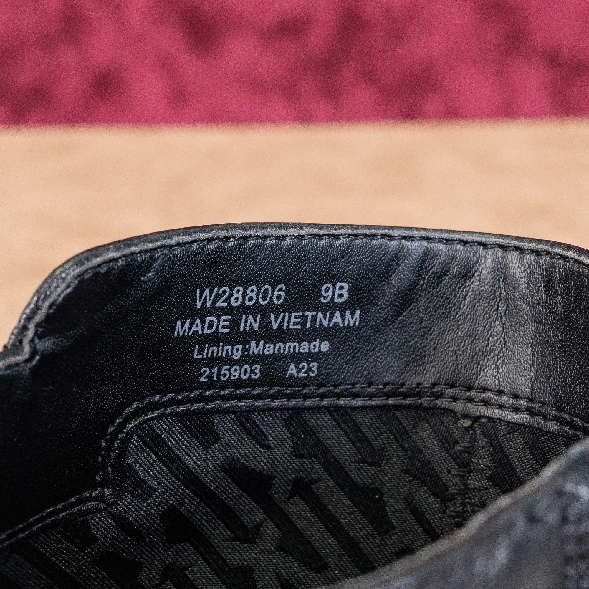 New Condition. No signs of wear on the soles. Never Worn. Made in Vietnam. Model # Foster. Retail $279. Leather Upper, Fabric Lining and Rubber Soles. Side zipper style for easy on and off. SKU11143