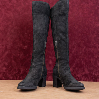 Born Women Black Distressed Suede Stacked Heel OTK Zip Boots sz 9.5