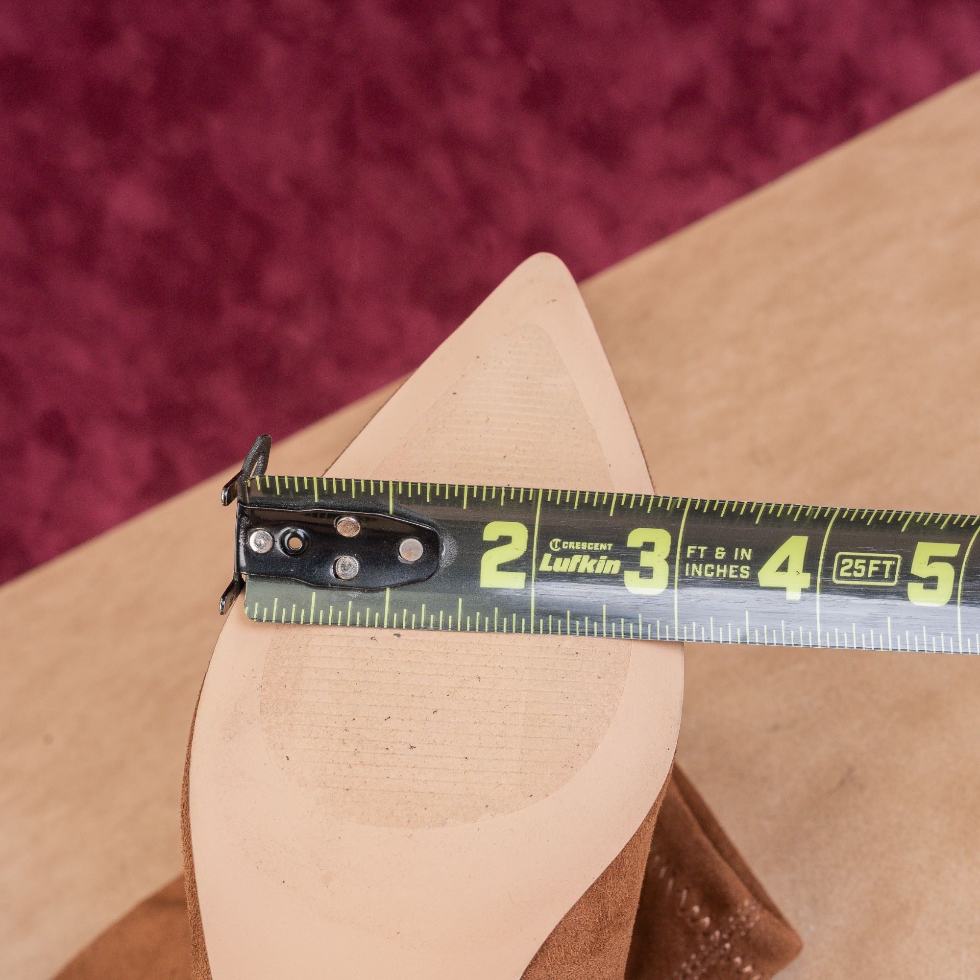 New Condition. No signs of wear on the soles. Never-Worn Retails for $189. Made in China. Fabric upper, Fabric Lining and Synthetic soles. Partial side zipper closure for easy on and off. Pointy Toe. Please check photos carefully for more information and details. SKU11264