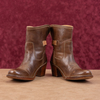 Frye Women Carmel dark brown Leather Strap Western Cowboy Ankle Boots sz 6.5
