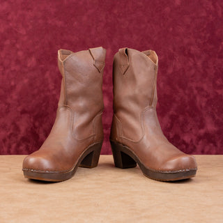 Sanitas Women Lottie Brown Leather Block Heel Slip-on Clog Ankle Boots 8US EUR38