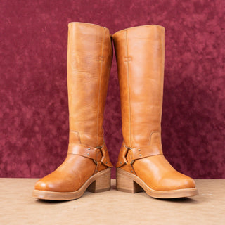 Frye Wmn Melissa Button Cognac Distress Leather Equestrian Riding Knee Boots 6