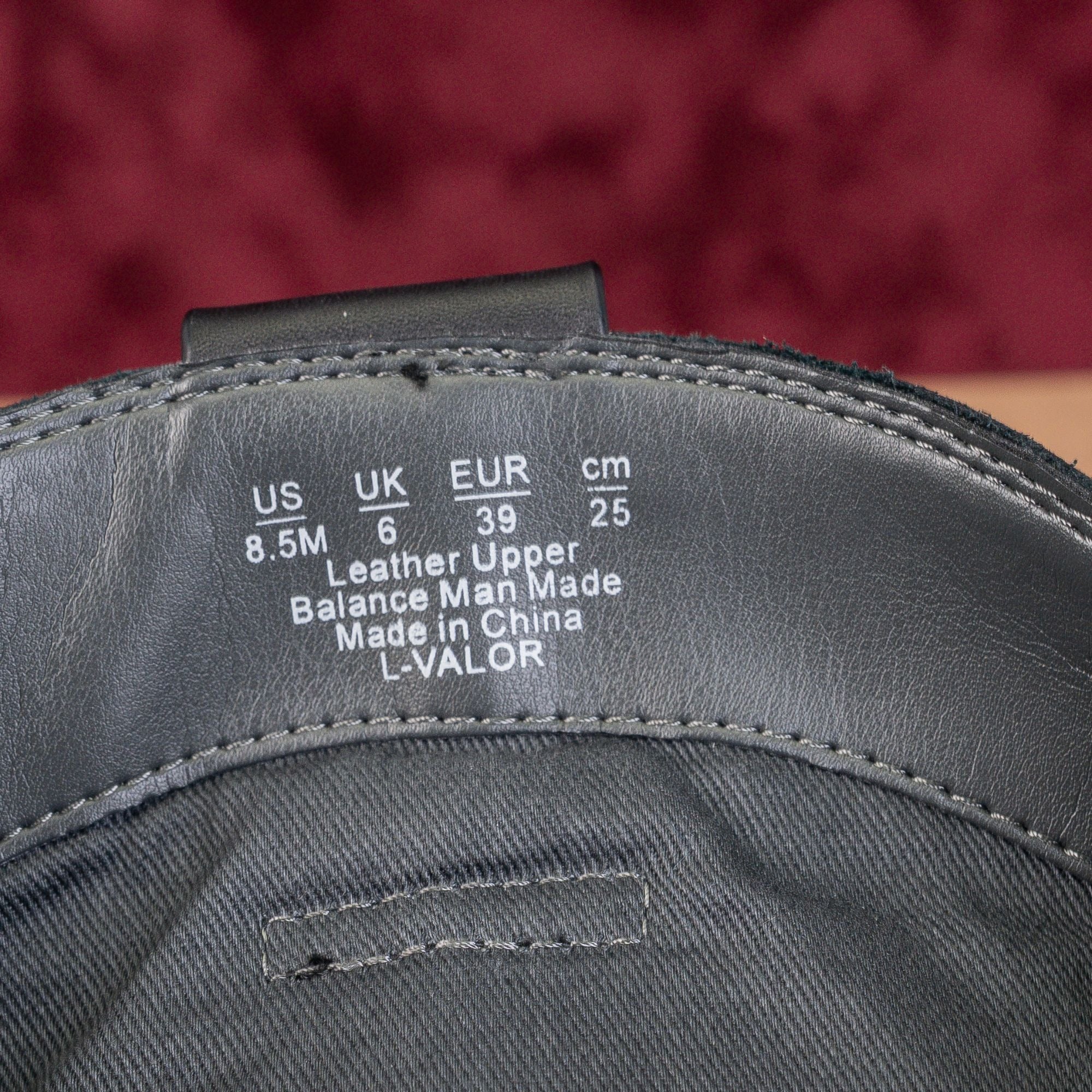 New Condition. No signs of wear on the soles. Never Worn. Made in China. Model # Valor. Retail $135. Leather Upper, Fabric Lining and Rubber Soles. Slip-on style for easy on and off. Please check photos carefully for more information and details. SKU11965