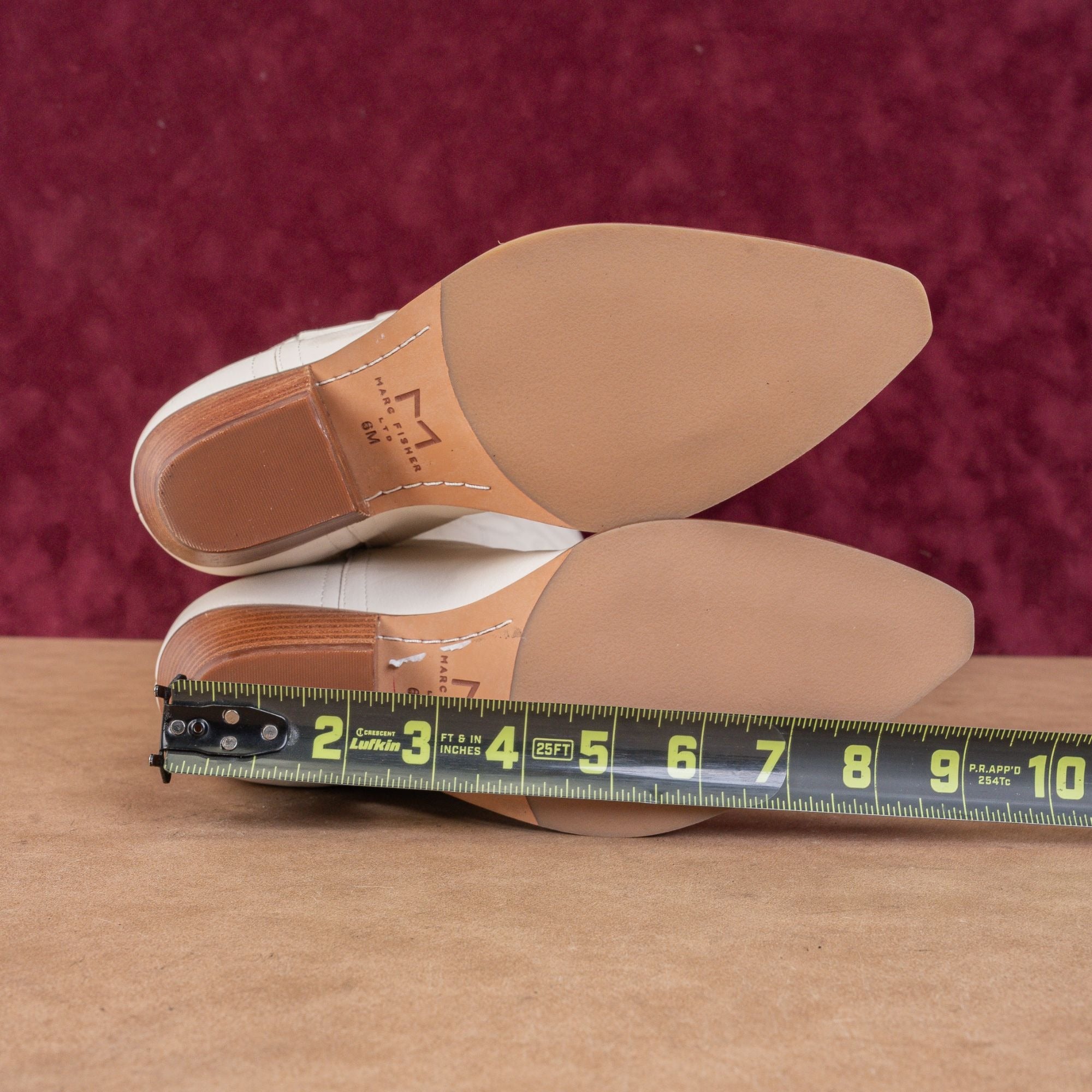 New Condition. No signs of wear on the soles. Never Worn. Made in Vietnam. Model # Hilda. Retail $149. Leather Upper, Fabric Lining and Rubber soles. Side zipper style for easy on and off. Pointy Toe. SKU11121