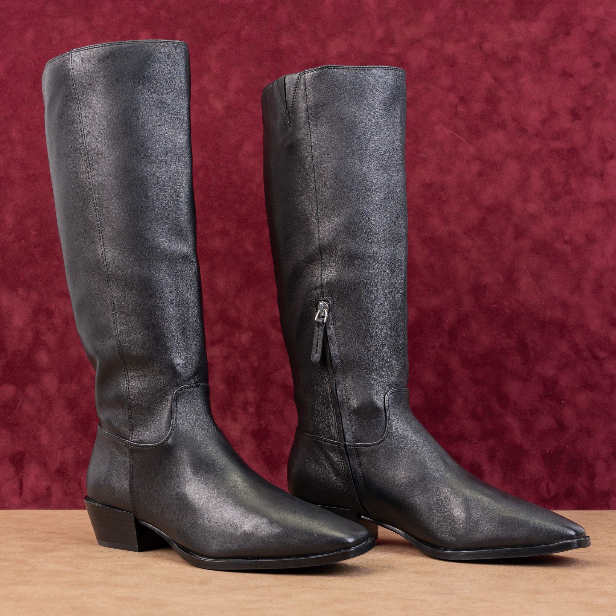Designed with a streamlined fit through the shaft, these boots provide a high-fashion look that pairs seamlessly with midi skirts or over skinny denim.