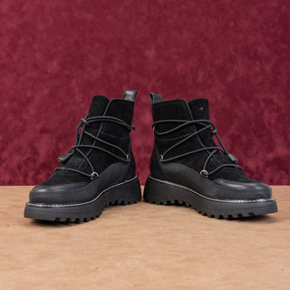Lucky Brand Women Caelia Black Leather Drawcord Lace Winter Platform Boots sz 6