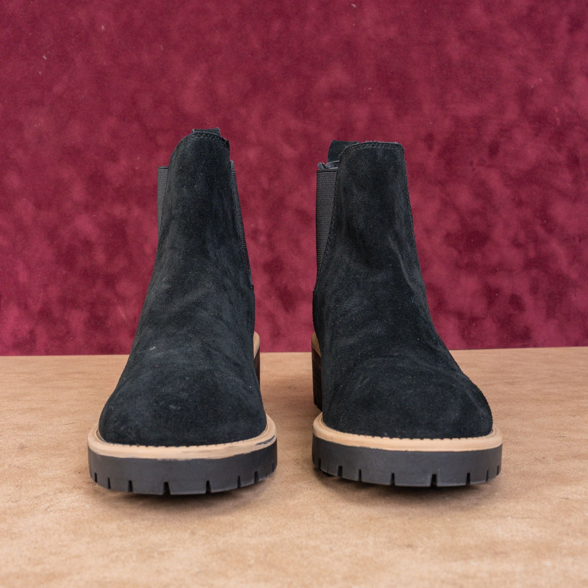 New Condition. No signs of wear on the soles. Midsole color is fading. Never Worn. Made in China. Model # Mathilda. Retail $179. Suede Upper, Fabric Lining and Rubber Soles. Side zipper style for easy on and off. Please check photos carefully for more information and details. SKU 11109