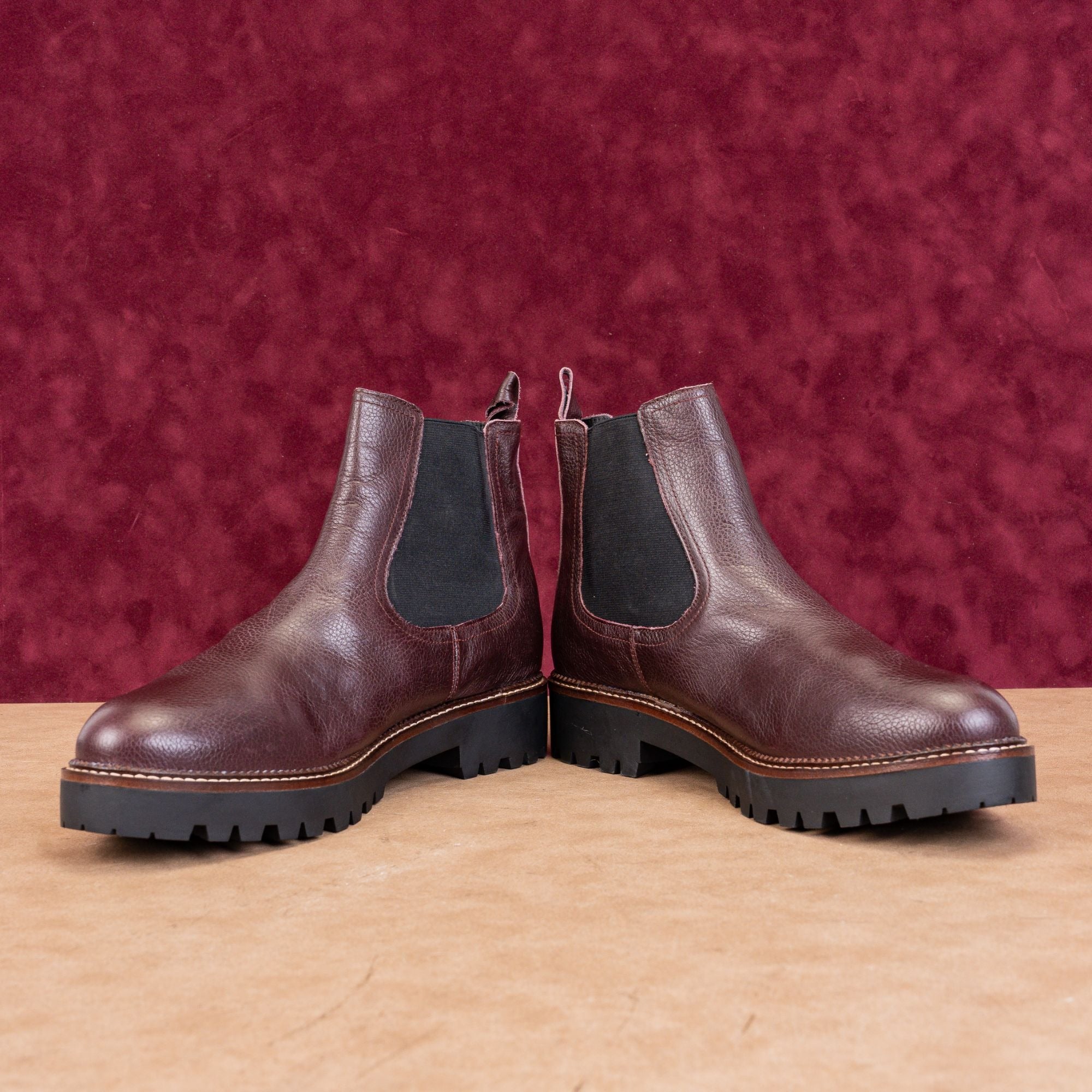 Step into effortless sophistication with these rich burgundy leather Chelsea boots, designed for both style and practical wear.
