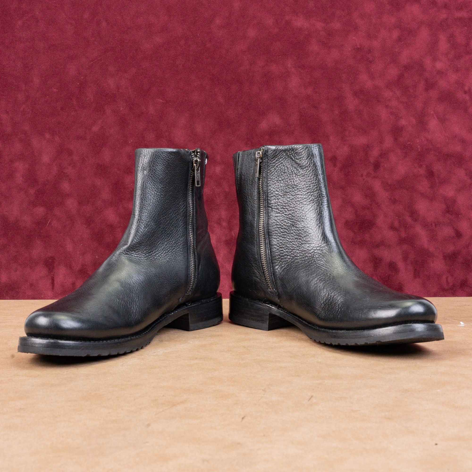 New Condition. No signs of wear on the soles. Never-Worn. Retails for $298. Model #Veronica Short. Leather Upper, Leather lining, and Rubber soles. Made in Mexico. Side zipper style for easy on and off. Round Toe. Please check photos carefully for more information and details. SKU 11549